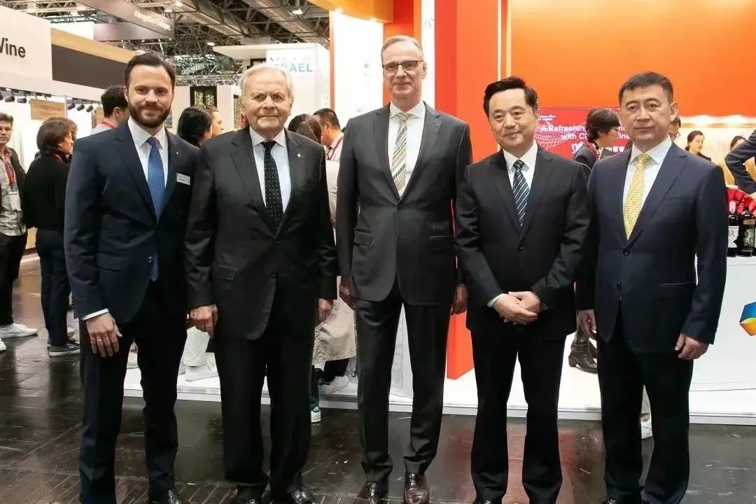 (由左至右)ProWein 代表Marius Berlemann、波爾多葡萄酒協會會長Bernard Magrez、杜塞爾多夫展覽會首席執行官 Wolfram Nikolaus Diener、中國駐杜塞爾多夫領事館總領事杜春國、世界十大最具影響力釀酒顧問李德美