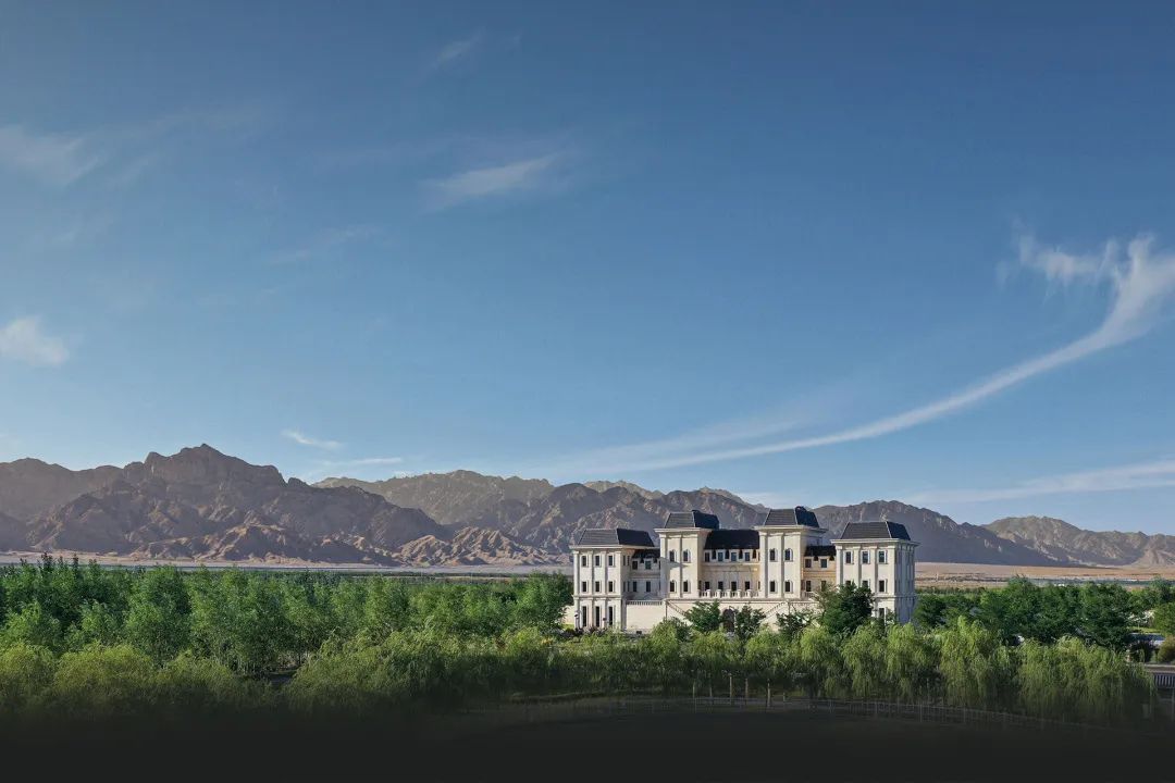 在位于賀蘭山東麓南段以東約5公里的地方,是美賀莊園所在地。從空中俯瞰,被葡萄園圍簇的“孤獨”酒堡與雄偉賀蘭山峰遙遙對望,體現了人工與自然的互融共通。其中,25米高的觀景水塔成為新晉打卡地,也是美賀莊園與賀蘭山對話的重要窗口。