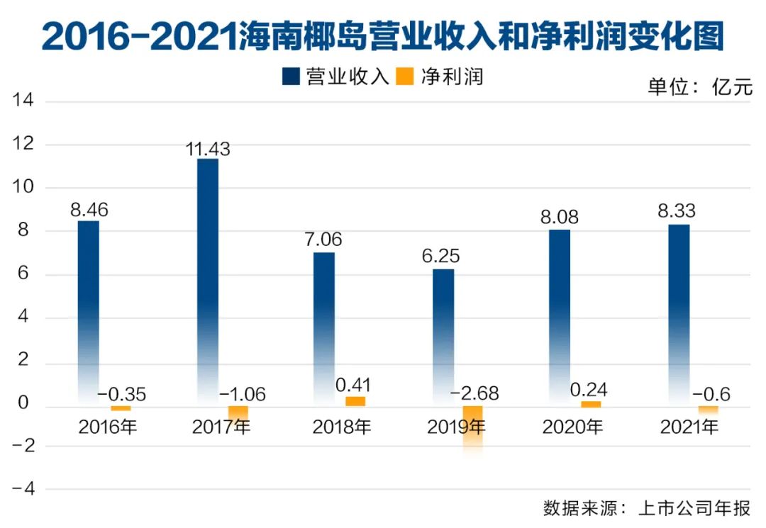 算上剛剛推出的2022年業(yè)績預報的話,這將是海南椰島自2016年以來第五次出現(xiàn)虧損。