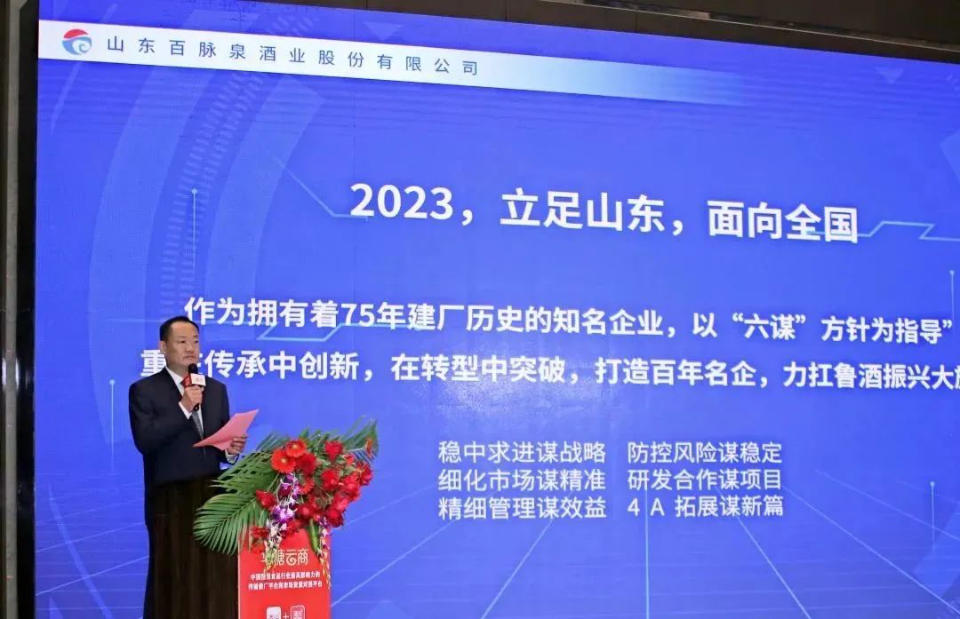 百脈泉酒業將立足山東,面向全國,以“穩中求進謀戰略、防控風險謀穩定、細化市場謀精準、研發合作謀項目、精細管理謀效益、4A拓展謀新篇的“六謀”方針為指導”,注重在傳承中創新,在轉型中突破,一是搶抓機遇,搶先一步,自信自強,高質量前行,堅定“雙壹號戰略”;二是深耕山東市場,打造省酒標桿;三是面向全國推廣泉文化和詞文化名酒,傳播國潮文化,打造第二增長極;四是持續推進百脈泉酒業國家4A級景區的品質提升、品位提升、體驗提升,加快相關產業延伸融合,形成產、學、研、旅一體化白酒釀造基地,探索傳承與創新、綠色與發展兼顧的可持續高質量發展道路,在傳承中創新,在轉型中突破,打造百年名企,力扛魯酒振興大旗。