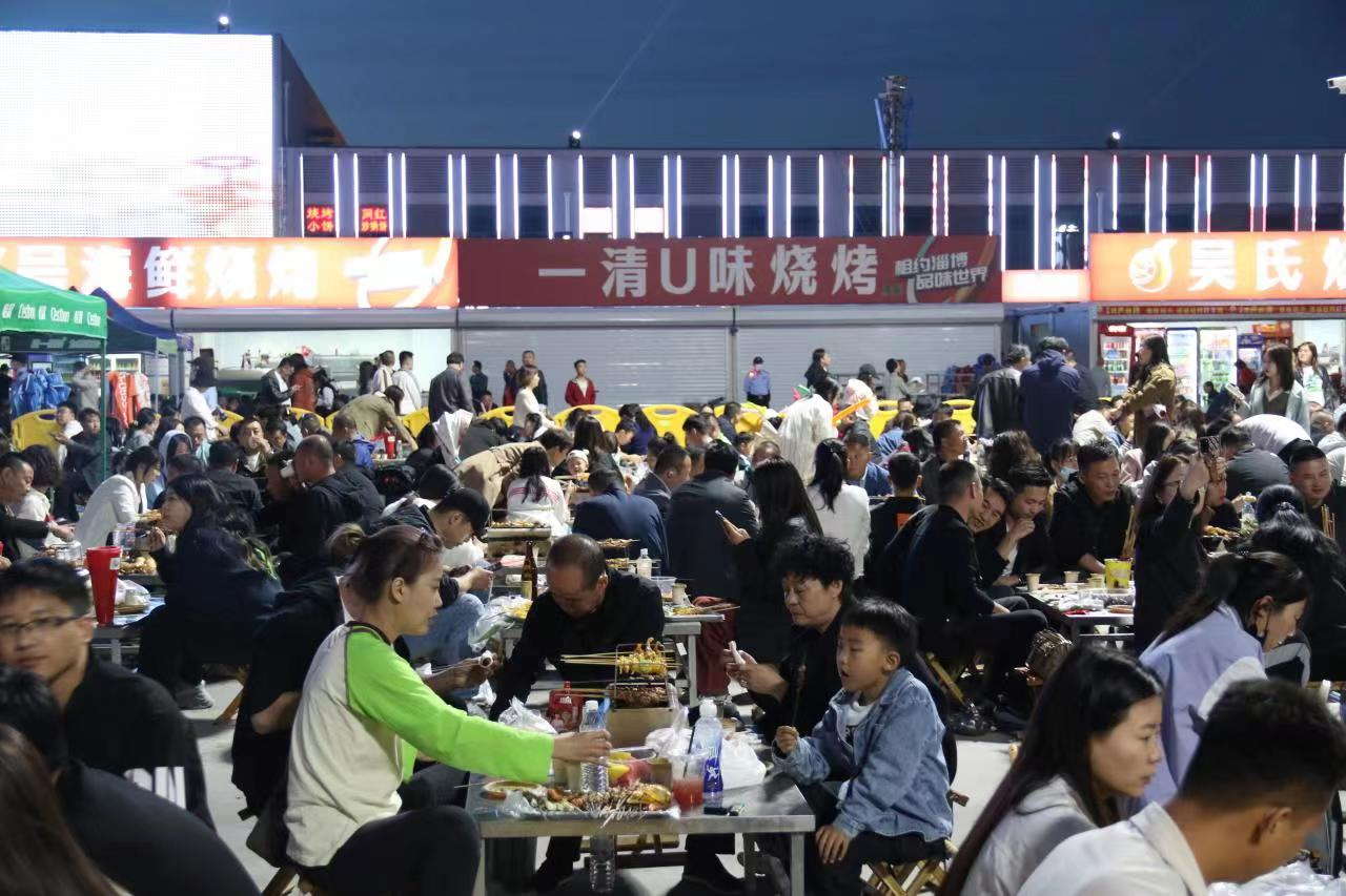 青梅初熟,萬物和暢,隨著夏的腳步,休整了三天的淄博燒烤海月龍宮體驗地5月7日繼續敞開大門,迎接八方來客。沿著魯泰快速路一路往西,外地車輛越來越多,從車牌歸屬地推測,淄博周邊城市消費者是今日進淄趕烤的主力軍。