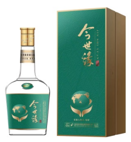 【柔雅型】700ml 42%vol今世緣星球大瓶酒·地球,以中國畫傳統色“石綠”作為產品主色調,側面搭配素金色系,整體端莊典雅,盒正面及瓶標以代表生態的葉紋留下深深的烙印,地球圖案呈現全球形狀輪廓,兩片葉似雙手呵護地球,呈現出—副和諧的生態地球畫面。