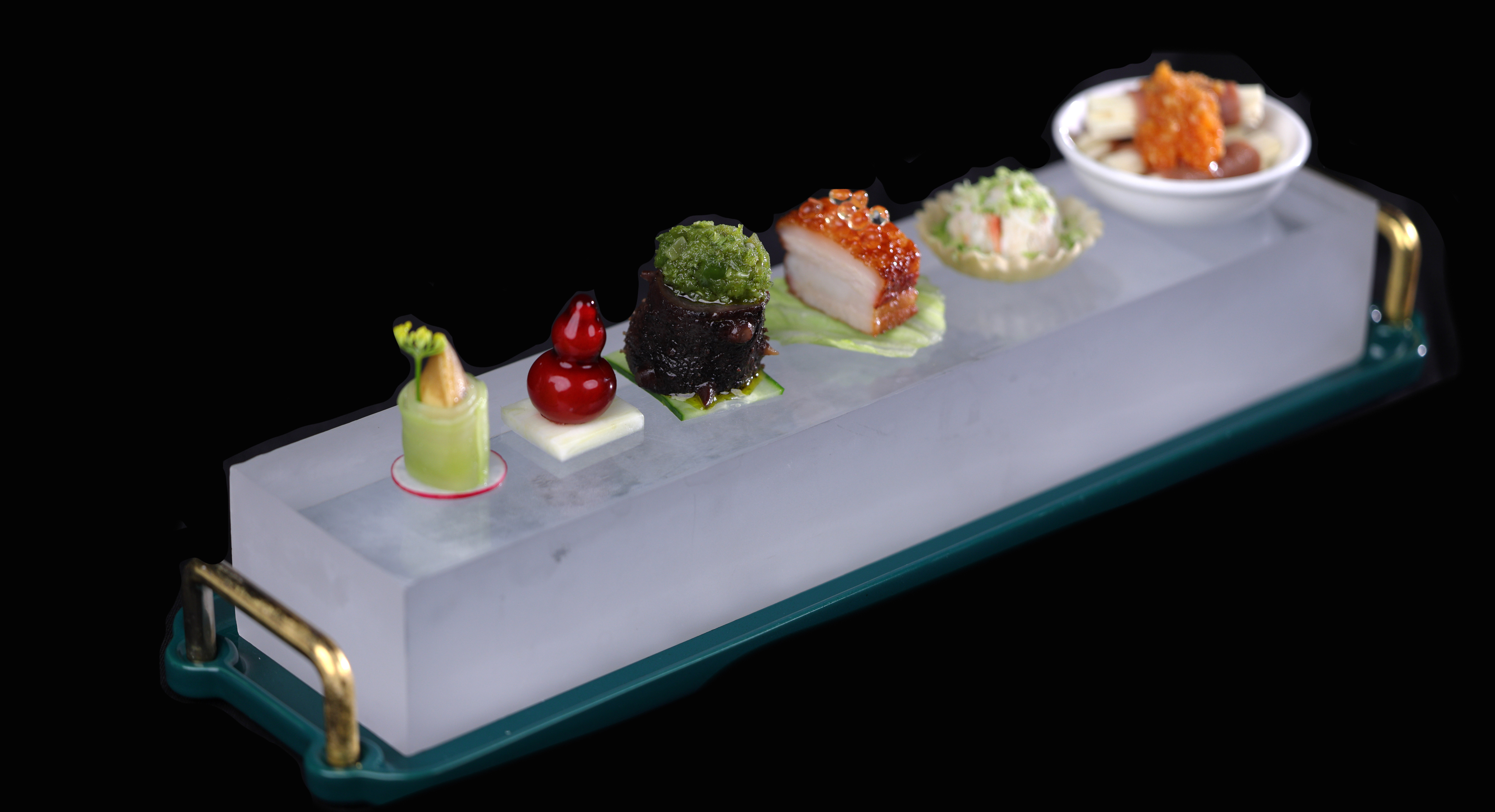 雅宴上,九道大菜“六福添彩迎夏暉”“魚子醬象拔蚌拼雙寶沙拉”“海馬鳳腰燉花膠”“蠔皇極品吉品鮑”“古法蒸東海黃魚”“黑松露慢燉雪花牛肉”“奇味醬野生菌皇”“鵝肝酥拼果皇琪瑪”“冰淇淋香瓜官燕”一一為嘉賓呈現。