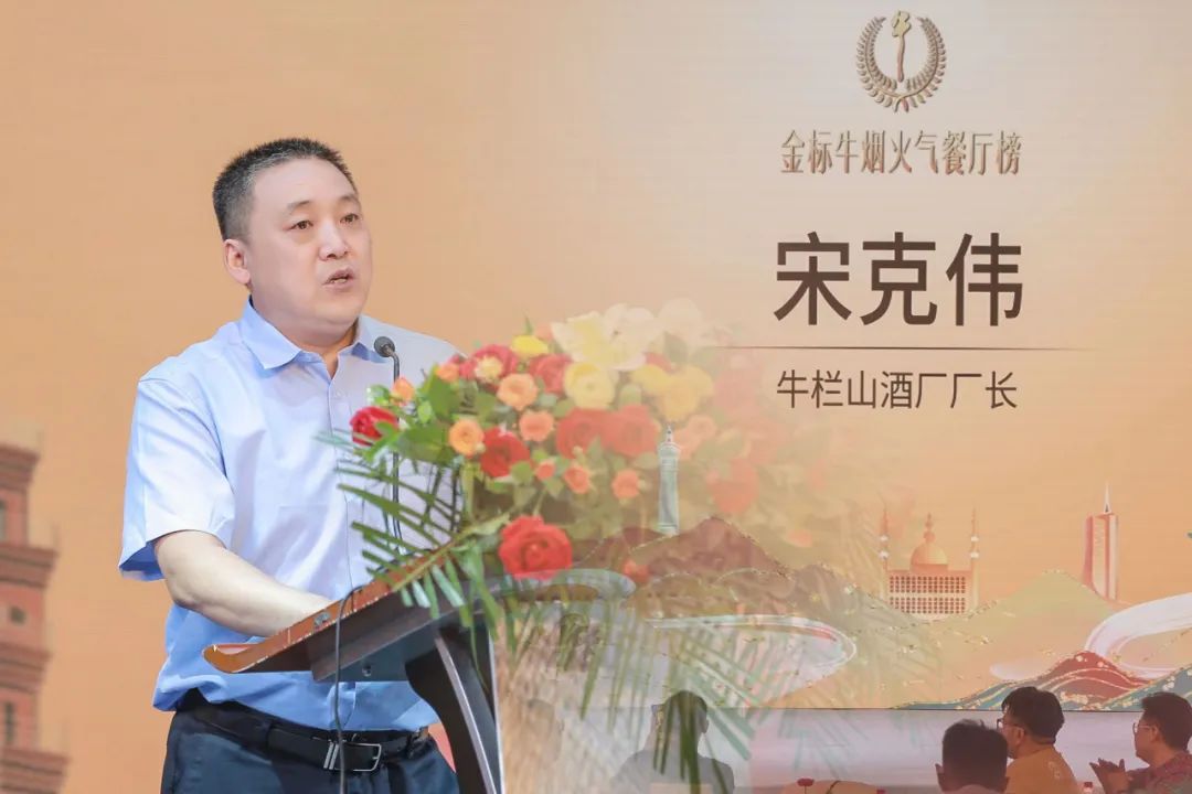 牛欄山酒廠廠長宋克偉從民酒定位與擔當的高度出發,詮釋了榜單評選對繁榮煙火氣經濟,弘揚地區特色飲食文化,建設人民美好生活的重要意義,表達了牛欄山深厚的民酒情懷。