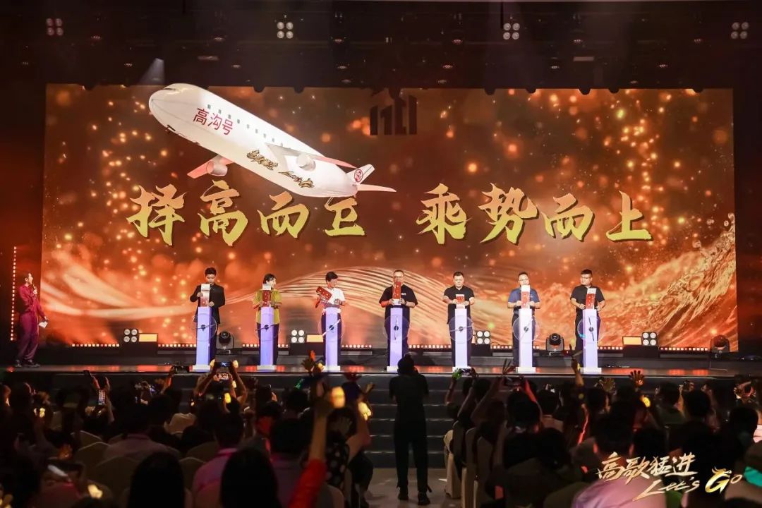 活動現(xiàn)場,全場響起“5、4、3、2、1”倒數(shù)之后, 一架“高溝號”飛機正式啟航,“高溝新旅程 ,Let’s go” 高溝標樣上市一周年啟動儀式正式啟動。臺上嘉賓共同將手中的機票插進啟動道具,見證“高溝標樣”開啟新旅程、奔赴新征程。