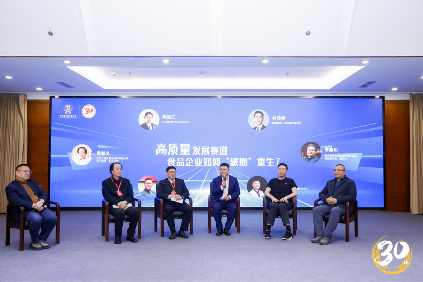 著名營銷專家、全食展組委會主任、龍品錫展覽總經理王海寧;旺旺集團研發中心總處長陳俊江;北京二鍋頭酒業股份有限公司總工程師、副總經理貢獻文;北京超市發連鎖股份有限公司原黨委書記、董事長李燕川;徽酒集團、盈信集團董事長林勁峰參加了“高質量發展賽道,食品企業如何‘破圈’重生?”高端對話環節,本次對話由中國副食流通協會食品包裝專業委員會秘書長王克建主持。
