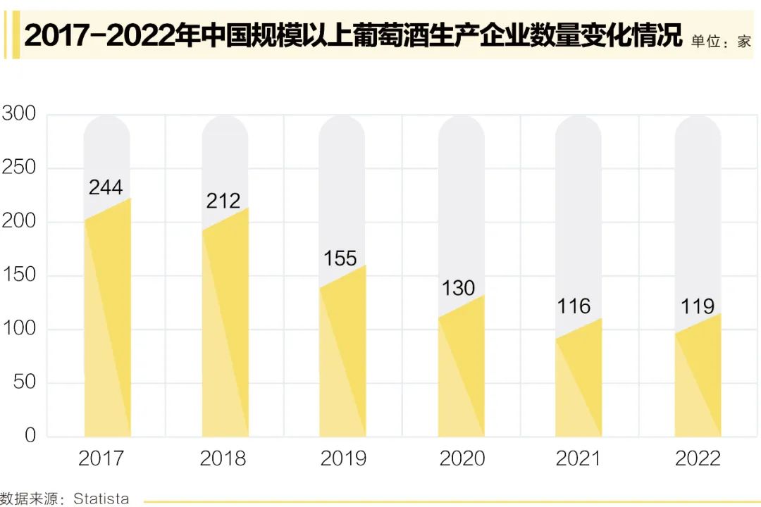 雖然,中國葡萄酒生產企業的數量從2017年的244家下降到2022年的119家,但Wang指出,許多中國生產商有其他行業的經驗和財富可供借鑒。“確實,一些生產商進入時過于樂觀,但由于規劃不周全或缺乏真正的堅守而被淘汰出局,但其他生產商有資源和長期愿景來堅持到底。”