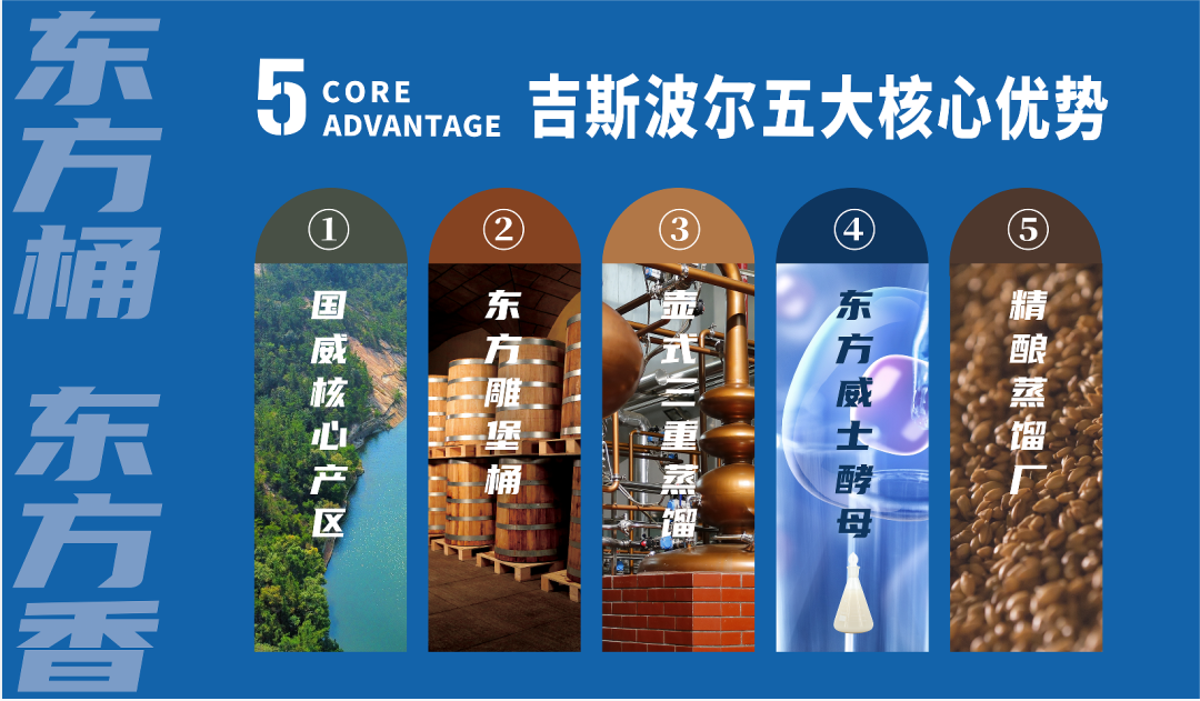吉斯酒業借助吉斯集團36年的家具生產優勢,率先使用國產蒙櫟木研發制作成蒙古櫟雕堡桶,采用比傳統雙重蒸餾器多一次的三重壺式蒸餾器,依靠自主研發的東方威士酵母和年產5萬噸的精釀威士忌蒸餾廠的優勢,創造性使用特種風味麥芽及雙酵母進行威士忌原酒發酵。