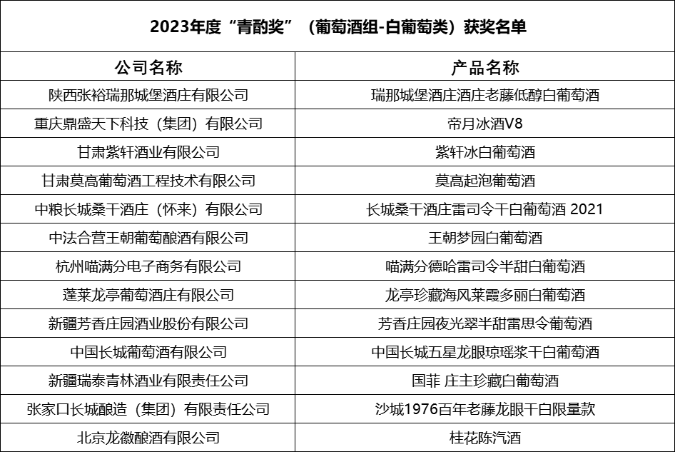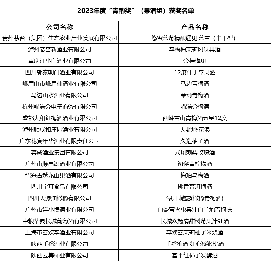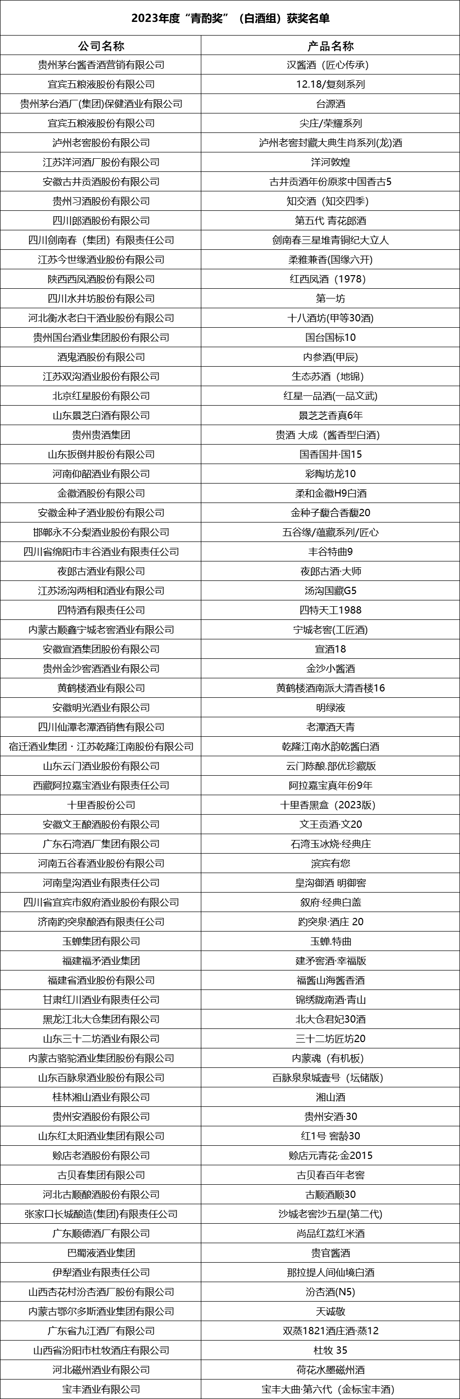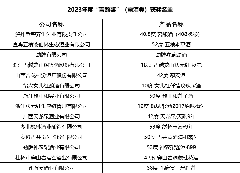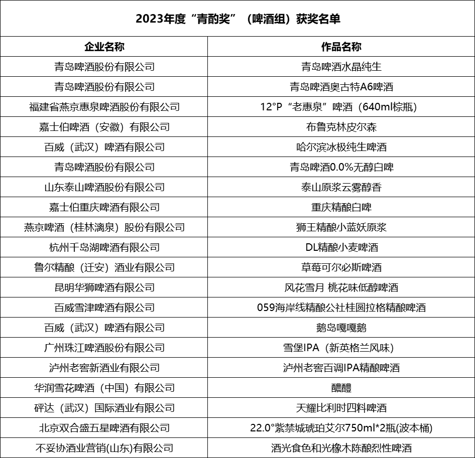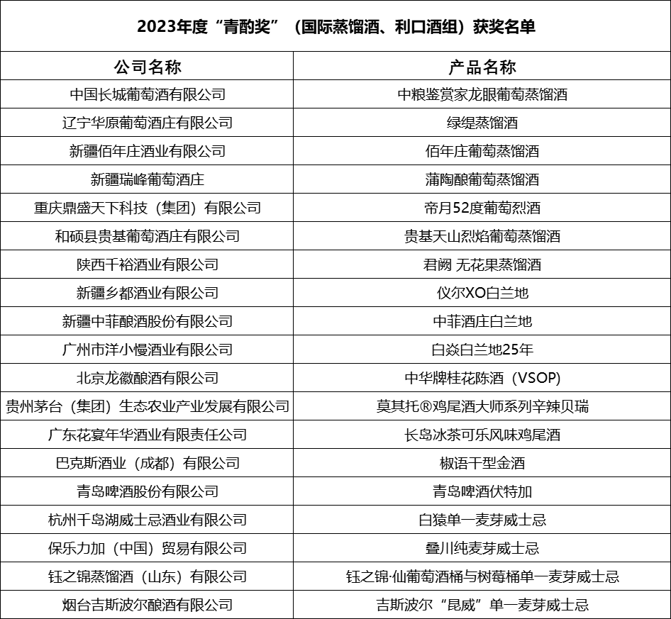 2023年度“青酌獎”酒類新品評選獲獎名單