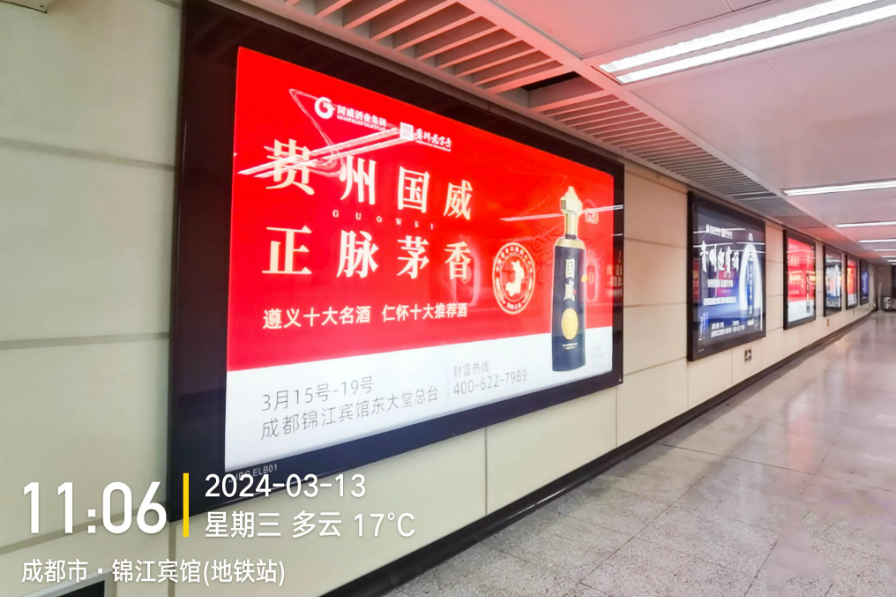 此外,在成都的關(guān)鍵交通節(jié)點(diǎn),如天府國(guó)際機(jī)場(chǎng)、高鐵站以及人流量龐大的錦江賓館地鐵站等地,國(guó)威酒業(yè)進(jìn)行了從地面到空中、從陸地到地下的一整套立體化廣告投放計(jì)劃,形成了“點(diǎn)、線(xiàn)、面”全方位的宣傳攻勢(shì)。這一連串強(qiáng)有力的市場(chǎng)動(dòng)作,如同一場(chǎng)春季糖酒會(huì)的品牌風(fēng)暴,為國(guó)威酒業(yè)積聚了強(qiáng)大的品牌動(dòng)能。