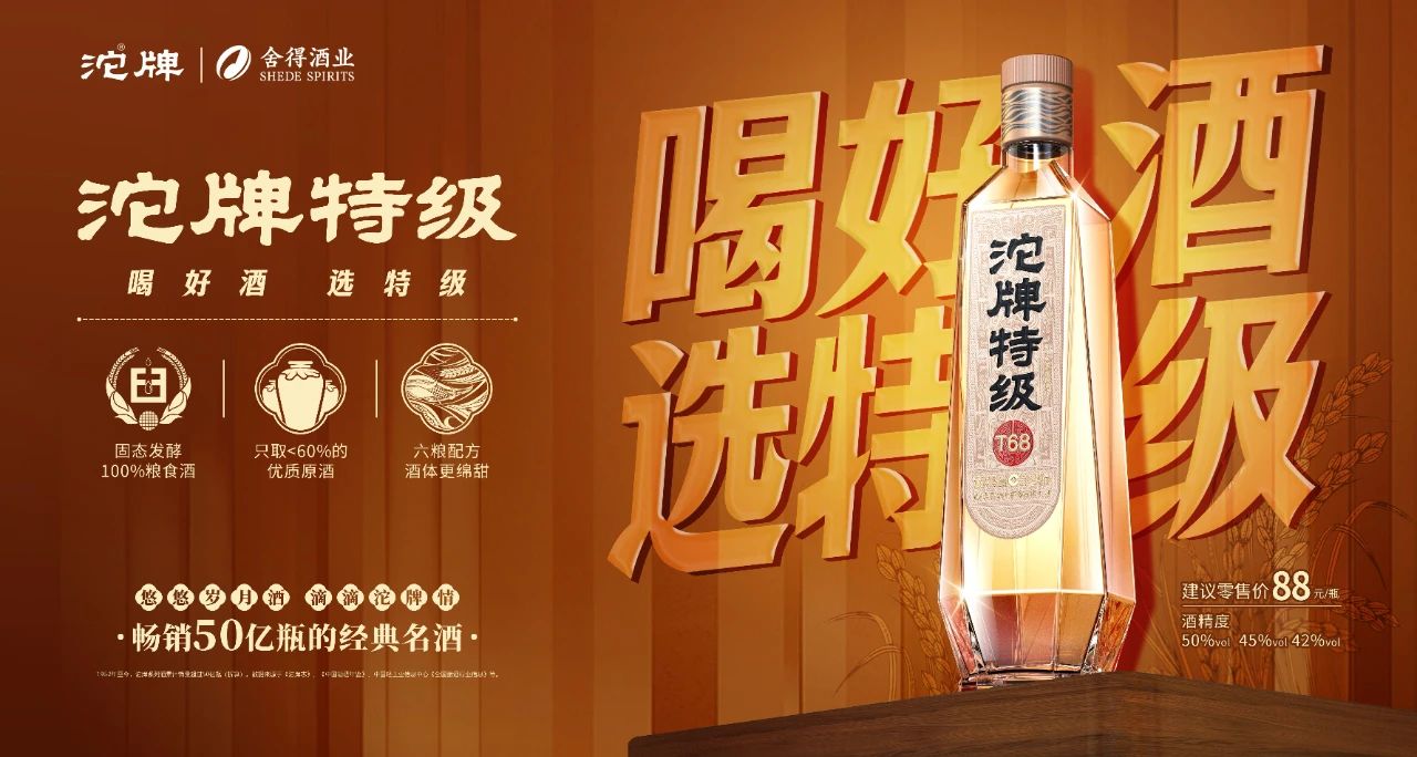 今年春糖期間,舍得酒、沱牌酒兩大品牌共同亮相。沱牌酒Slogan也正式更新為“暢銷50億瓶的經典名酒”,同時,以大眾耳熟能詳的“悠悠歲月酒,滴滴沱牌情”為背書。