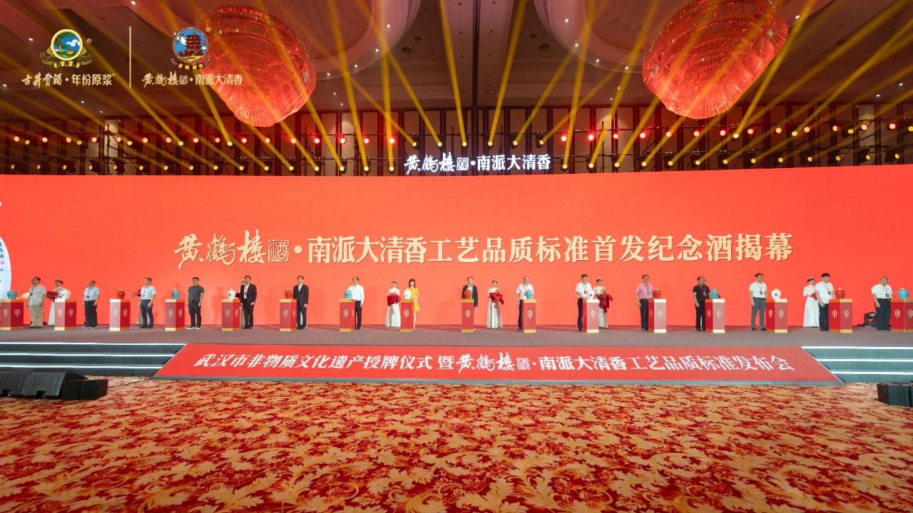 是日,武漢市非物質文化遺產授牌儀式暨黃鶴樓酒·南派大清香工藝品質標準發布會在湖北武漢隆重舉行。