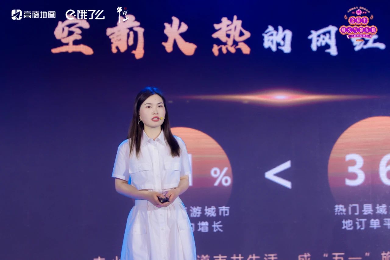 金標牛煙火氣餐廳榜榜單負責人張娜向廣大入圍餐廳代表詮釋了榜單評選的意義與評選機制,并以投屏互動的形式,解讀高德、餓了么、優酷等平臺,通過頂級運營資源,對金標牛店的強大賦能和流量支持。