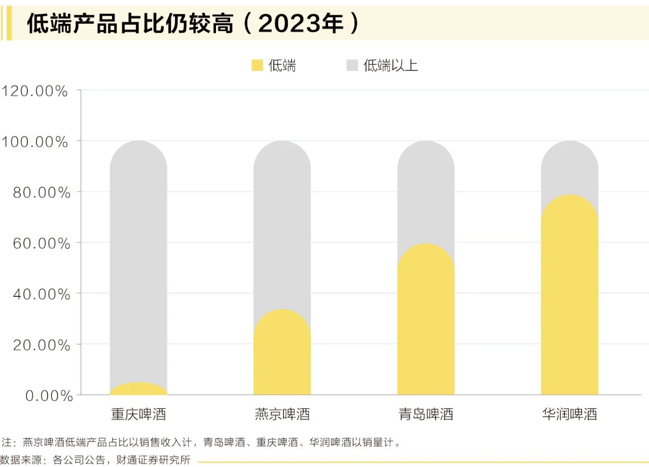 ●金字塔尖高端啤酒占比仍低