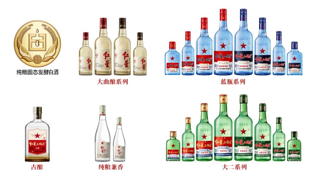 第三,從產品力來看,紅星憑借其對市場的深刻理解和精準定位,以強品質背書,不斷進行產品升級,完善產品矩陣,如今已擁有成熟的二鍋頭全產品線。在大眾光瓶酒領域,布局十幾元到三十幾元價格帶,如紅星大小二系列,不斷總結提升二鍋頭的釀酒工藝,酒體呈現清香純正、自然爽凈的風格特點;紅星藍瓶系列則在此基礎上,創新酒體設計,使得酒體入口更柔順,飲后更舒適;純糧兼香則以獨特的清濃兼香工藝,開辟了一條差異化的路徑;同時,紅星為適應消費者多樣化的品質新需求,推出高品質、有特色的三曲三香大曲釀;在中高端盒裝酒領域,藍花瓷系列和鈺璽系列產品深度詮釋了京味文化之典雅和華貴,是目前二鍋頭品類在中高檔消費帶最具辨識度與市場底蘊的產品系列;在高端盒裝酒領域,紅星打造高端品牌——紅星高照,樹立二鍋頭品類價值新標桿。
