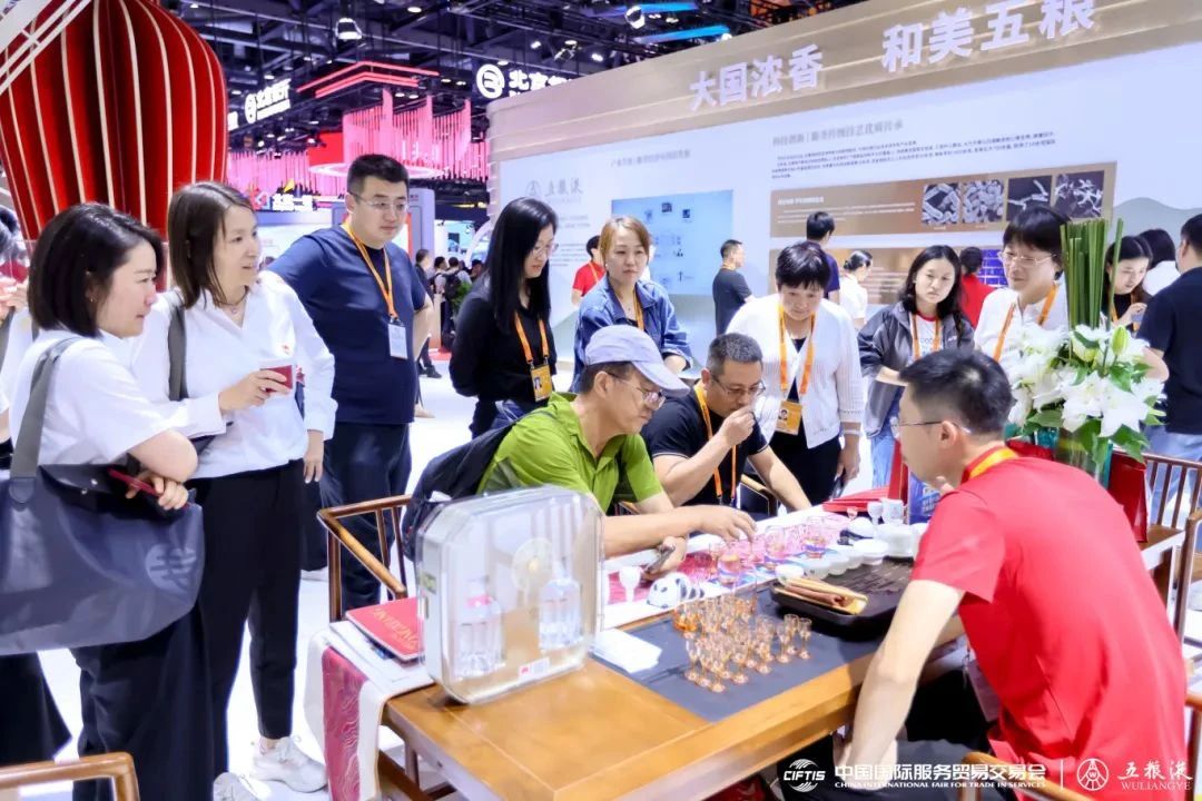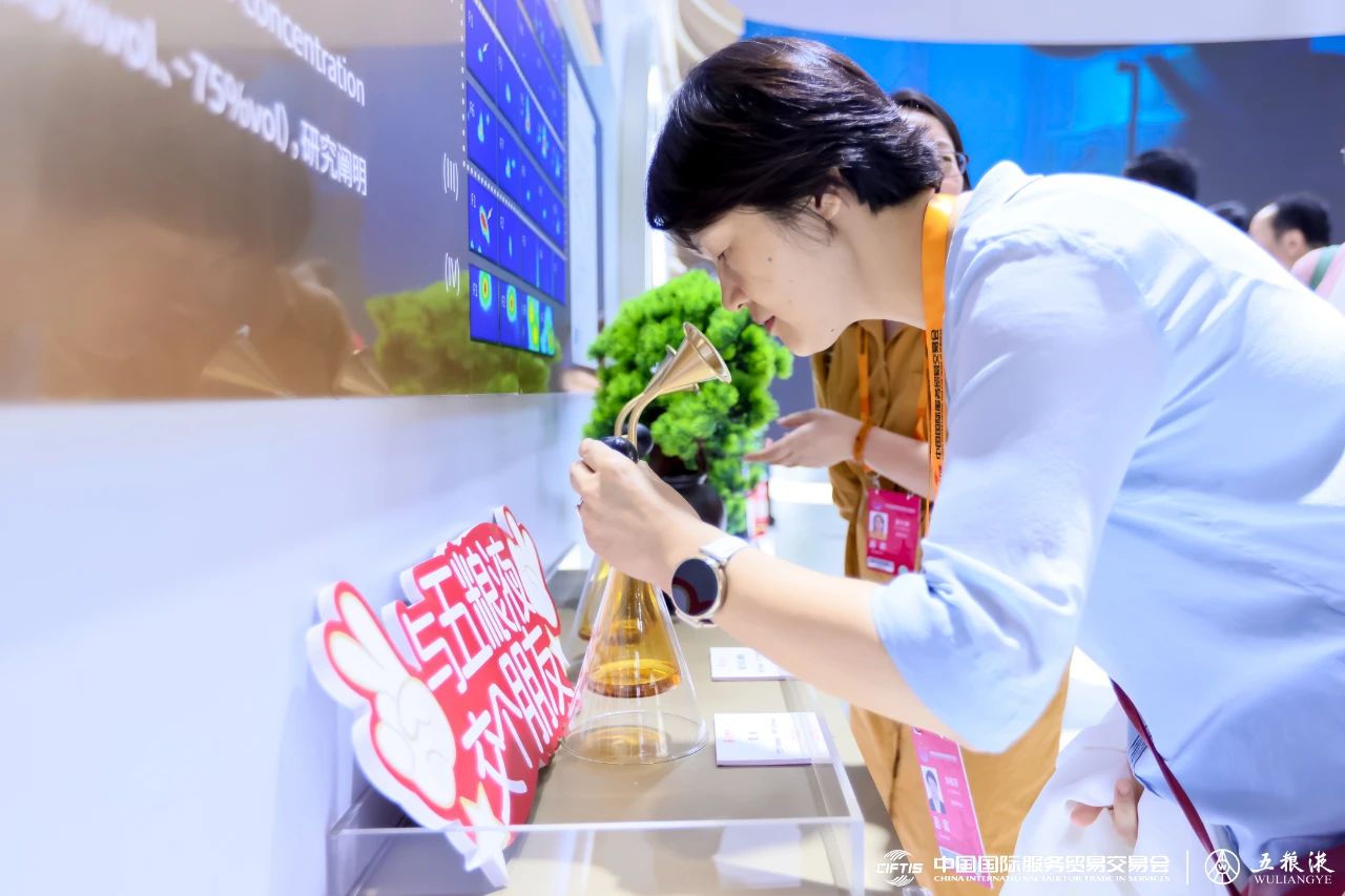 本屆服貿會延續(xù)“一會兩址”形式,五糧液在國家會議中心和首鋼園區(qū)兩大場所精心設展。在國家會議中心綜合展區(qū),以“產業(yè)升級-服務經濟可持續(xù)發(fā)展”“科技創(chuàng)新-服務傳統(tǒng)技藝優(yōu)質傳承”“和美文化-服務全球文明交融互鑒”三大主題,呈現(xiàn)五糧液源遠流長的文化底蘊、可持續(xù)高質量發(fā)展的卓越成果、核心產品的濃香魅力,展示傳統(tǒng)白酒釀造行業(yè)加快發(fā)展新質生產力,服務全球經濟的強勁動能。同時,高端收藏級的經典五糧液系列產品,滿足消費者多元需求的第八代五糧液、39度五糧液、45度五糧液、68度五糧液等產品,五糧液·九龍壇、五糧液·甲辰龍年生肖酒、五糧液·萬壽無疆、五糧液·月滿人圓等多款代表產品精彩呈現(xiàn),匠心匠意和高端品質令參展觀眾稱贊不斷,駐足參觀品嘗。首鋼園區(qū)內“以中國酒會世界友”的互動現(xiàn)場吸引了眾多觀眾圍觀參與,五糧液設置了“五”粉兒漆扇DIY、識五谷、“滿額抽大獎”互動等活動,以及“我是酒神”有獎盲品酒、“五糧液在服貿會邀您開啟City walk”等一系列創(chuàng)意互動活動,以創(chuàng)意新穎的方式,讓與會者沉浸式地參與體驗五糧液文化。