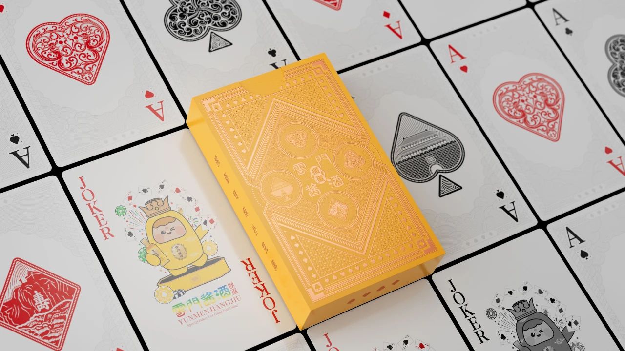 禮盒及撲克的色調(diào),以云門醬酒帝王黃為主,尊貴而不失雅致。精選優(yōu)質(zhì)紙張,色彩鮮艷,圖案清晰,洗牌順暢,不易磨損。設(shè)計(jì)理念中,加入青州文化、云門文化、龍文化、壽文化等元素,寓意富貴、歡慶、輕松、快樂!