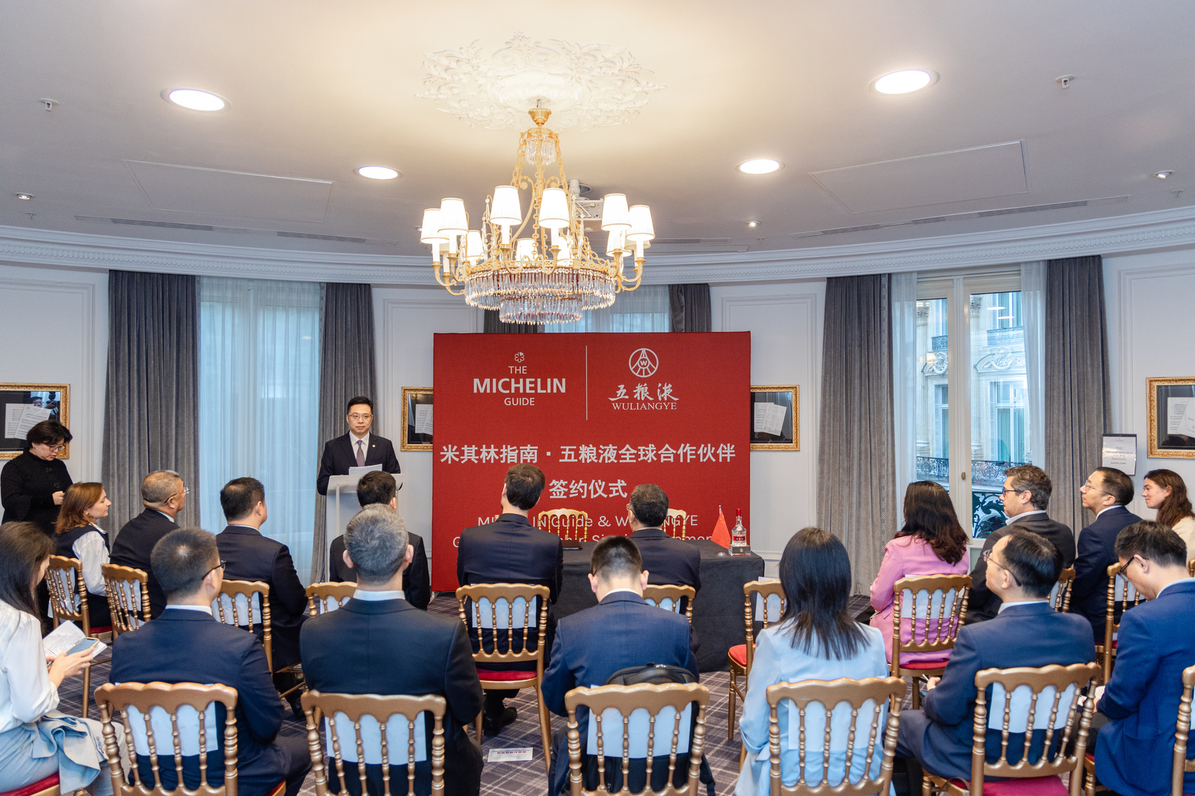 當地時間9月23日,五糧液—米其林指南全球合作伙伴簽約儀式在法國巴黎舉行,這是五糧液“和美全球行”法國站的重要活動。