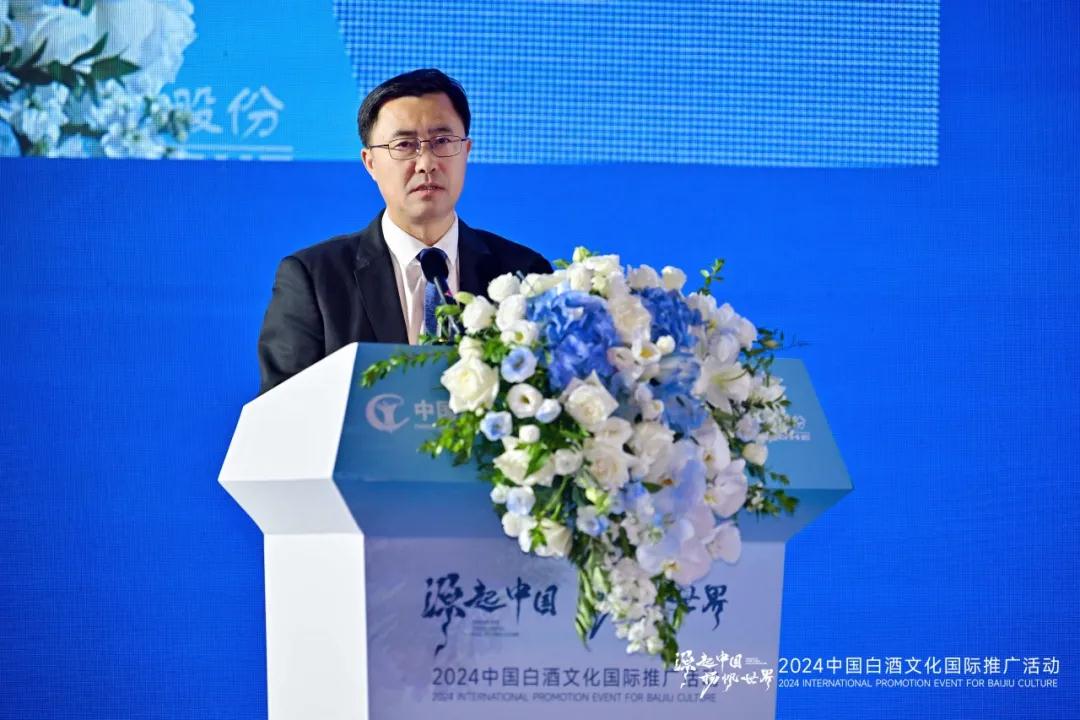 中國酒業協會白酒文化國際推廣工作委員會當值理事長,洋河股份黨委書記、董事長張聯東在致辭中,通過三句話分享了白酒文化“源起中國·揚帆世界”的“前世、今生、未來”:憶往昔崢嶸歲月,中國名片、文化名牌,引領“白酒文化生態圈”;看今朝生機盎然,C位出道、火爆出圈,構建“酒業命運共同體”;向未來任重道遠,融通古今、貫通中西,連接“文化交流新絲路”。