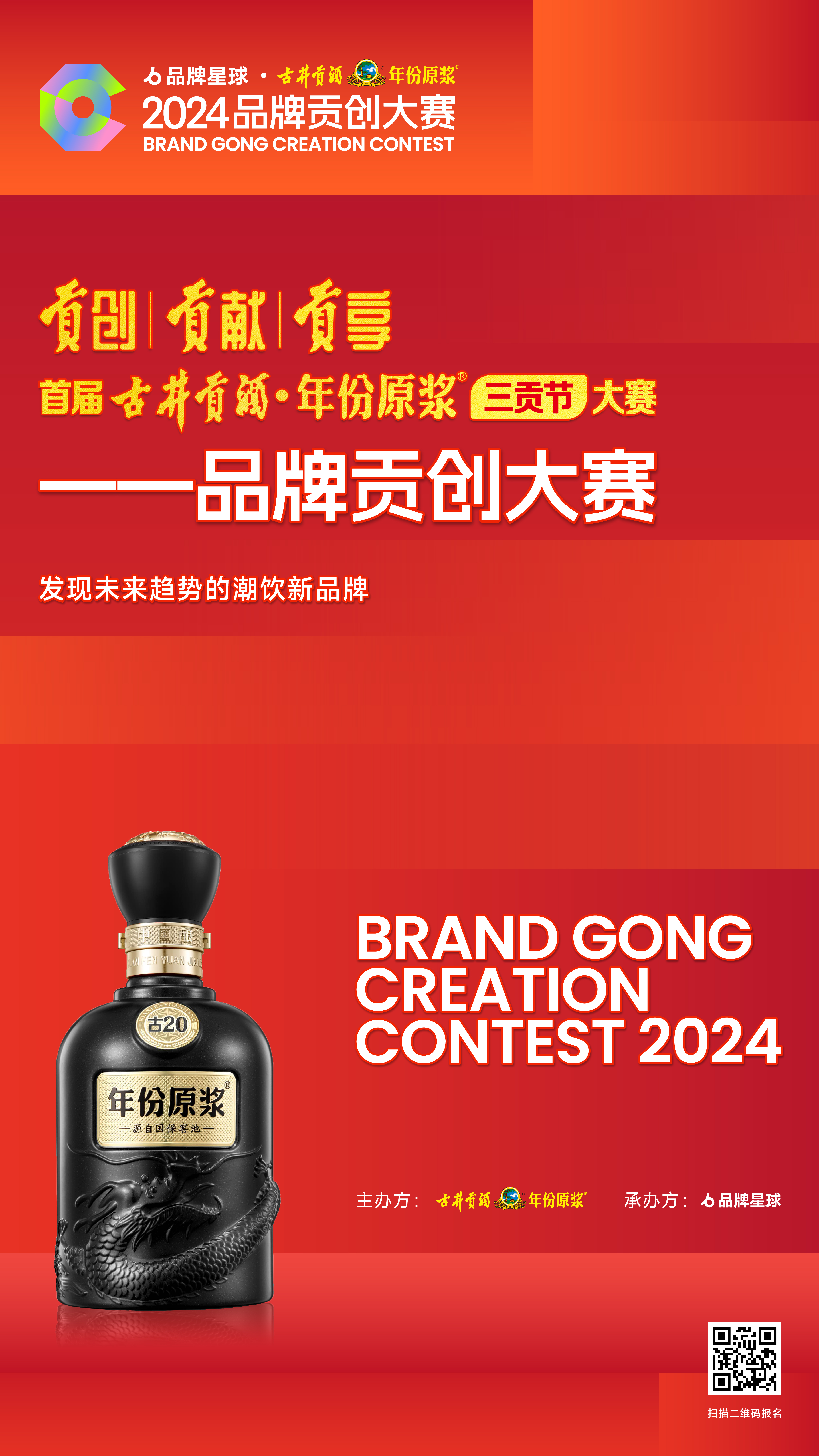 為加速古井生態產業全方位升級,「貢創·貢獻·貢享 首屆古井貢酒·年份原漿三貢節」將全面開啟,古井貢酒攜手品牌星球共同發起「2024 品牌星球·古井貢酒品牌貢創大賽」。