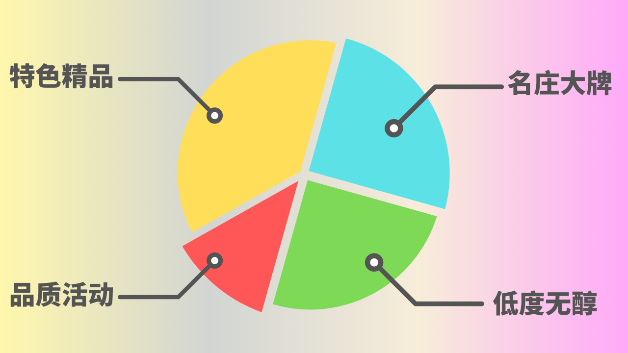 名莊大牌 品質高地 名莊及大品牌展區匯聚了眾多世界知名的酒莊和大品牌。從法國的波爾多1855列級莊到意大利的超級托斯卡納,從澳大利亞的巴羅薩谷酒王到智利的十八羅漢,全球頂級名莊的佳釀在此匯聚。每一瓶酒都承載著歷史的沉淀和釀酒師的匠心獨運,都能讓你感受到名莊酒的獨特魅力。