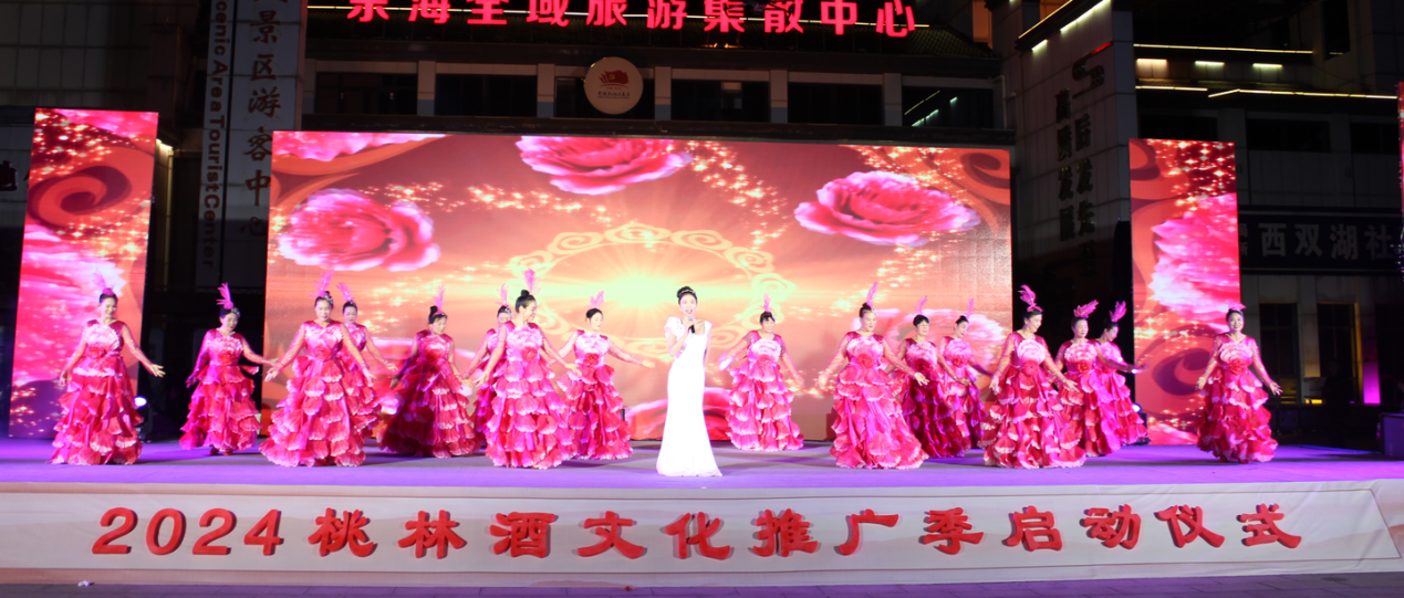 晚上19:00,啟動儀式在開場大型歌舞《桃林酒飄香》中拉開序幕。
