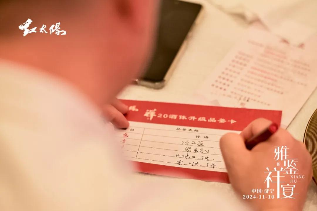 紅太陽酒業營銷公司副總兼文化品牌部部長郝鵬飛為嘉賓們講述了“第二代祥20”的品牌文化內涵和產品設計理念,孫守營總工程師細致講解了“第二代祥20”的釀造特點和工藝特色,現場嘉賓在專業品鑒官的引導下,通過“觀、聞、嘗、格”的鑒評方式,進行了品評。