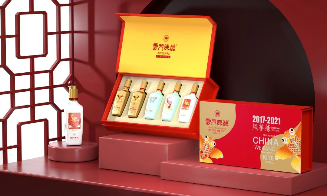 “云門陳釀·風(fēng)箏緣”禮盒,將2017年至2021年5年間的風(fēng)箏緣產(chǎn)品以5瓶125毫升的雅致小酒經(jīng)典再現(xiàn),通過產(chǎn)品文化、企業(yè)文化、地域文化的深度融合,塑造了一款兼具紀念意義和收藏價值,且能夠代表濰坊地域文化特色的饋贈佳品。
