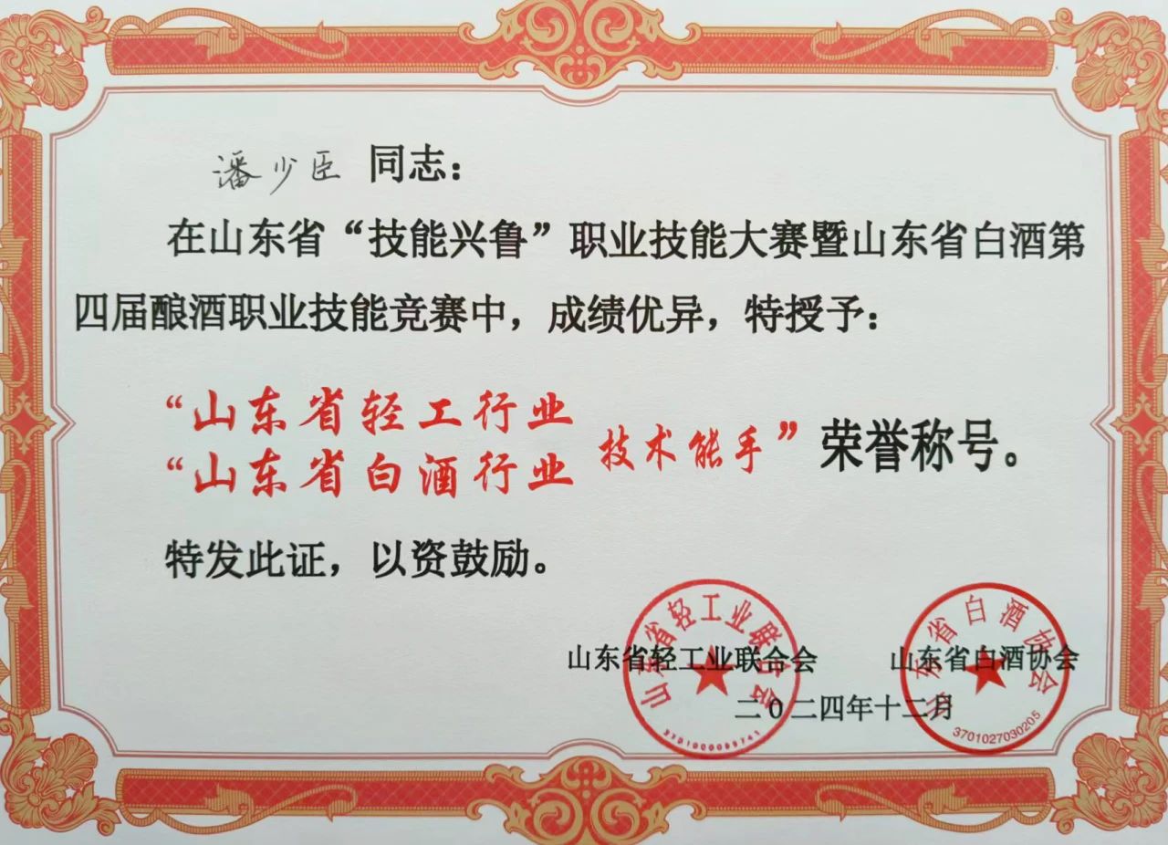 12月10日,山東省“技能興魯”職業技能大賽暨山東省白酒第四屆釀酒職業技能競賽在德州武城圓滿落幕。