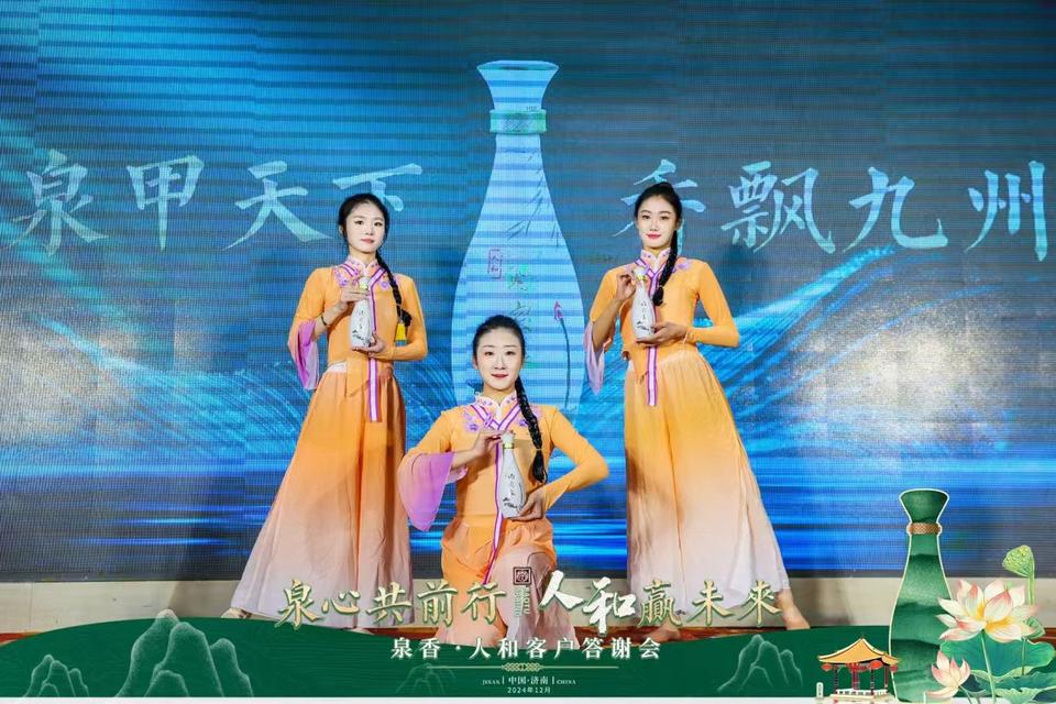 活動現場,萊蕪區的合作伙伴們齊聚一堂,共同見證這場意義非凡的答謝會。會場內燈光璀璨,氣氛熱烈,精心布置的裝飾和溫馨的氛圍,體現了趵突泉酒業對每一位客戶的尊重。趵突泉酒業以一場精心策劃的文藝演出,拉開了盛會的序幕。從以泉水為題的舞蹈,到經典的歌曲演繹,每一幕都讓人沉醉,每一曲都展現了泉水文化的獨特韻味。