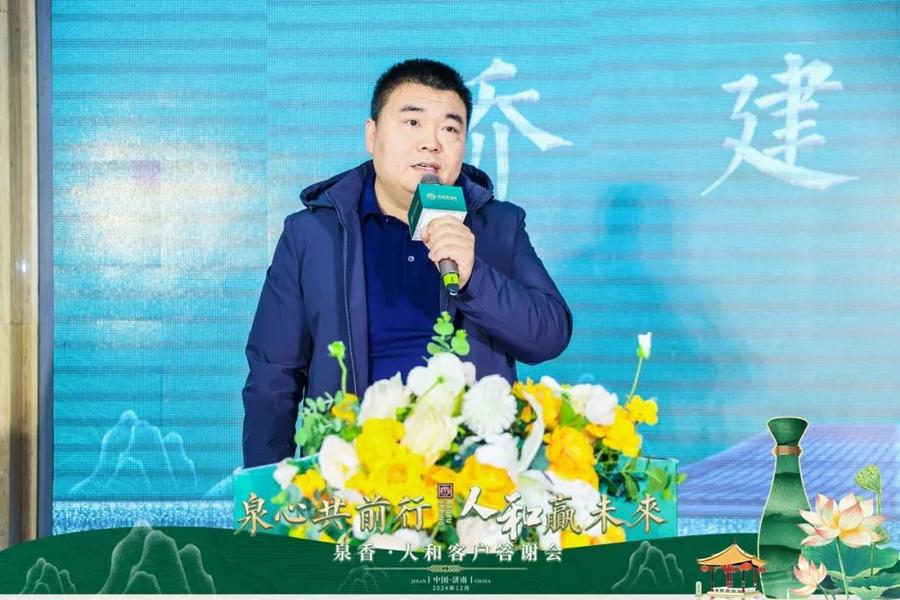 趵突泉酒業銷售副總喬建在致辭中對參與活動的客戶們表示了熱烈的歡迎和衷心的感謝。他提到,趵突泉品牌在萊蕪地區能夠取得今天的成就,離不開每一位客戶的信任與支持。從市場調研到產品推廣,從品牌活動到客戶服務,每一個環節都凝聚著雙方的辛勤汗水和智慧。正是這種相互信任,相互支持的伙伴關系,使得趵突泉酒業能夠在競爭激烈的市場中穩步前行,不斷取得新的突破。
