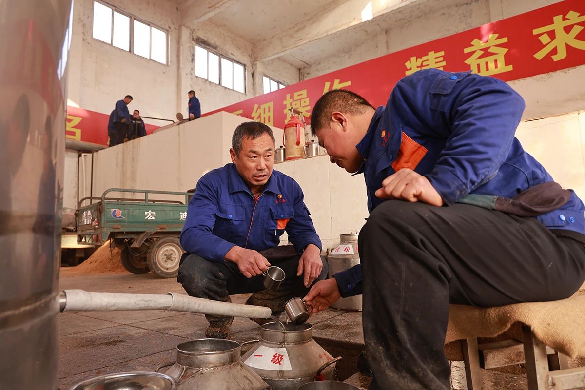 亢吉忠,22年扎營釀酒車間,狠練基本功,創新摸索“10厘米壓氣裝甑法”,避免了跑汽損失,發明了“斷氣蒸餾法”,極大提高了原酒品質,2021年6月摘得德州市第七屆職業技能大賽白酒釀造“裝甑、摘酒”技能賽第一名,榮獲“德州市技術能手”和“德州市五一勞動標兵”稱號;畢樹青,28年釀酒如一日,精通穩準配料、探汽裝甑、量質摘酒、按質并壇、蒸煮糊化等各個環節,多次奪得公司釀酒技術比武第一名,不但被授予“山東省輕工行業、山東省釀酒行業技術能手”榮譽稱號,還承擔起釀酒技術、大曲培養等培訓和實操工作,為青年骨干的培養貢獻了力量。