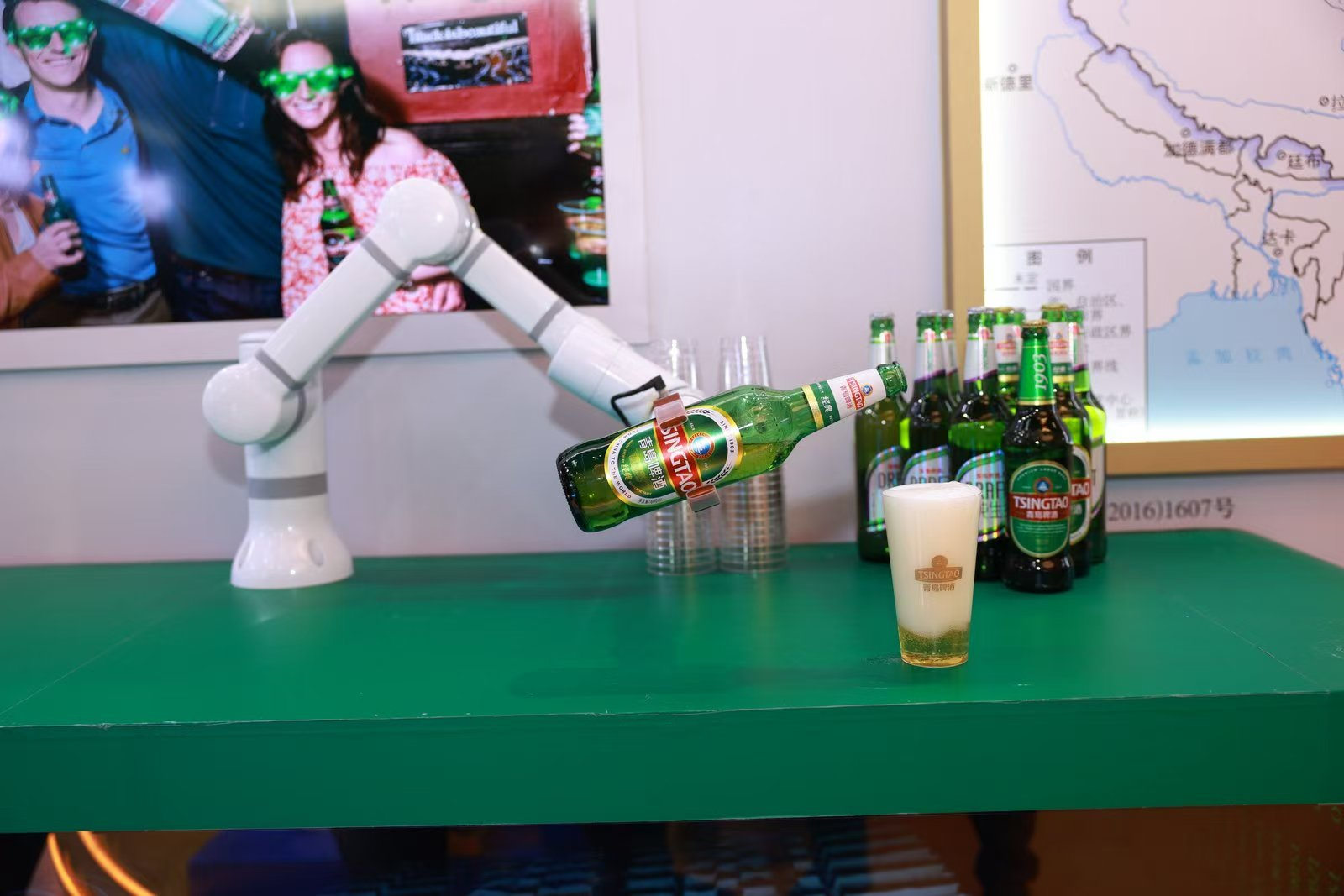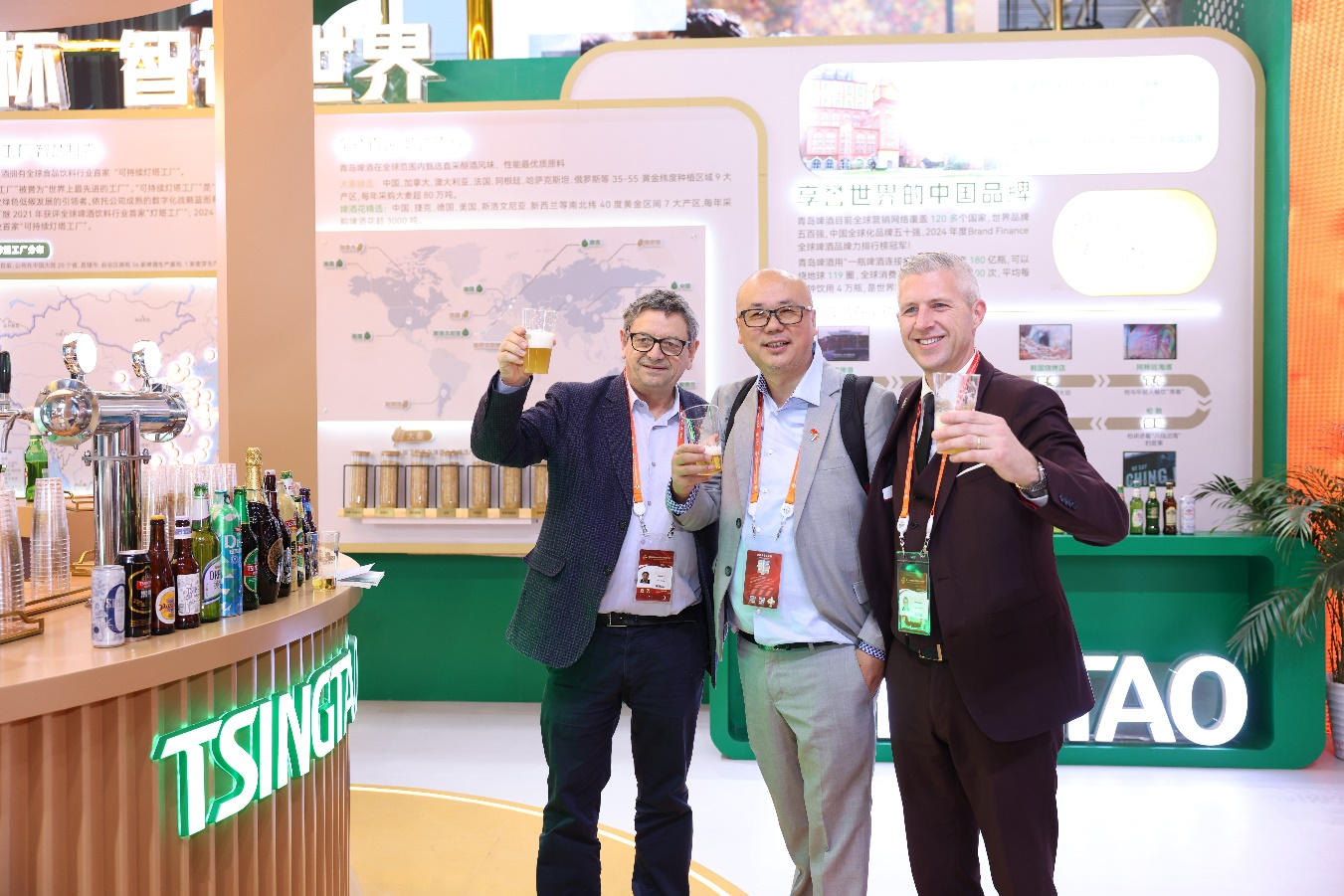 青島啤酒釀酒師、國家啤酒評酒委員江歡大家被團團圍住,他指著展區(qū)的兩張地圖,鋪陳了一條生動的鏈條——全球甄選、全球共享的完整供應(yīng)鏈和產(chǎn)業(yè)鏈。