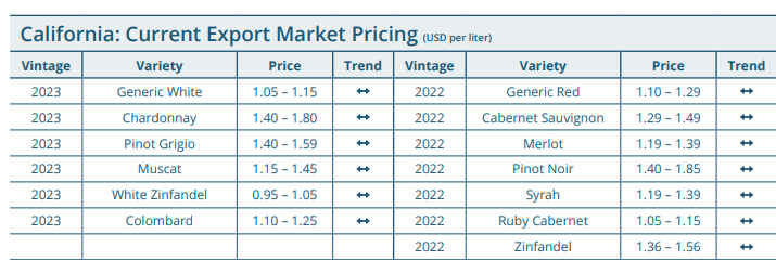 過去兩年,由于收成減少,一些市場上的部分白葡萄酒出現了供需平衡。例如,智利、法國南部、西班牙和南非的供應目前非常有限。紅葡萄酒占全球葡萄酒庫存的大部分,而種植紅葡萄品種的葡萄樹更可能被拔除。2023年歐洲的葡萄收成較低,2024年智利和南非的收成也較低,這將收緊普通白葡萄酒和單一品種白葡萄酒的供應,而這些白葡萄酒的供需平衡已經好于紅葡萄酒。受對白葡萄酒需求的推動,西班牙1-5月的葡萄酒出口總額增長了3.6%,智利1-6月的葡萄酒出口總額增長了14.1%。意大利白葡萄酒在出口方面繼續表現良好:2023年,IGT灰比諾已售罄;2024年1-7月,普羅賽克的裝瓶量增長了5.7%。由于擔心成本上升、消費者的消費習慣發生變化,以及零售商和分銷商似乎仍在去庫存,世界各地的買家一直在繼續保守地削減入貨量。但對于那些能夠確定潛在銷售增長領域的買家來說,散裝酒代表著一個極具吸引力的、物美價廉的機會。目前,加州、法國和阿根廷更像是買家的沃土,價格較低的包括加州中央山谷葡萄酒,但也有來自加州沿海地區的知名葡萄酒,非常適合中檔出口項目。Ciatti8月份發布的報告稱,在法國,由于市場放緩,2023年份和無年份葡萄酒的剩余庫存質量水平較高,價格也有所下降,這在未來1-2個月構成了一個真正的機會,而2024年份葡萄酒的價格可能會開始上漲。來自著名勃艮第產區的瓶裝紅葡萄酒和白葡萄酒的價格明顯低于以往,阿根廷庫存有大量較12個月前更低的標準、優質和高端的馬爾貝克葡萄酒。
