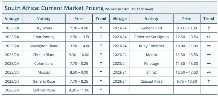 整個8月份,南非散裝葡萄酒市場的國際活動都很有限,而9月份也未能帶來歐洲和北美葡萄酒詢盤的顯著上升,白葡萄品種現在只有小批量供應。在兩年的小收成之后,紅葡萄酒的供應也不多,出口價格保持穩定。蘭特本身也延續了自6月份以來的強勁勢頭,9月份達到了自2023年7月以來的最高水平,部分原因是投資者對南非的信心有所改善。