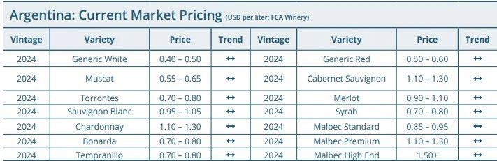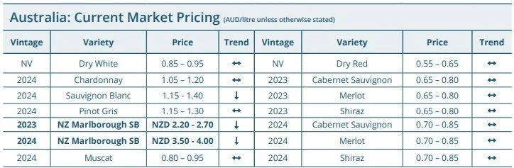 智利仍然存在大量的葡萄酒庫存,主要是2024年及之前年份的標準和優質紅葡萄酒,包括通常在瓶裝市場上銷售的葡萄酒,大部分入門級紅葡萄酒都是在今年早些時候以很低價格銷售的。自3月底中國市場重新向澳大利亞葡萄酒開放以來,智利葡萄酒對中國的銷售有所下降。智利農業部8月公布的2024年官方壓榨數據為9.306億升,比2023年的11.1億升下降了15.6%,這是自2010年以來最小的產量。法定產區葡萄酒為8.042億升,其中,65.3%是紅葡萄酒。現在智利的白葡萄酒庫存非常有限,白葡萄酒品種可能會在明年1月份售罄。與2024年相比,2025年簽約白葡萄品種的價格有所上漲。由于濃縮葡萄汁的需求和葡萄園的持續搬遷,紅葡萄酒的價格也有所上漲。因此,預計2025年散裝葡萄酒的價格將高于2024年,但仍應具有國際競爭力。阿根廷所有級別的馬爾貝克葡萄酒繼續保持良好的庫存水平,出口價格穩定,其國際需求一直保持穩定,國內需求也一直在增長,比索貶值的趨勢未變。與往常一樣,澳大利亞和新西蘭的散酒市場在過去一個月里一直很平靜。隨著需求得到滿足,澳大利亞對中國的出貨量有所放緩,但供應商期望需求在1月春節前再次上升。新西蘭散酒市場在每年的這個時期發展得都很緩慢,價格有競爭力的2023年份長相思庫存仍保持良好,2024年份也很容易買到。