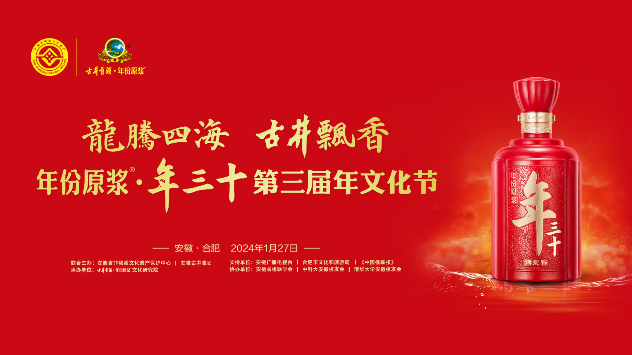 1月27日,龍騰四海、古井飄香,“年份原漿·年三十”第三屆年文化節在合肥市罍街、幸福街里、合肥古井假日酒店三地共啟,一場極具創意,滿滿年味的文化節正在上演。