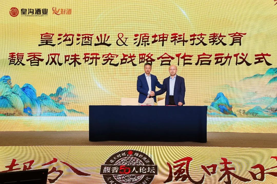 多年來,源坤教育科技始終穩居中國白酒教育與技術服務領域前沿。其在白酒品質研究,特別是風味創新表達方面,成果權威且見解深刻,引領行業風尚。這與皇溝馥香品類創新發展理念高度契合。在本屆論壇上,皇溝酒業與源坤教育科技順勢而為,舉行馥香風味研究戰略合作啟動儀式,攜手開啟馥香白酒風味研究新征程 。