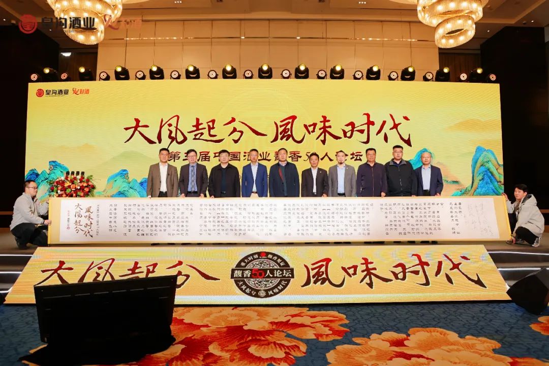 第三屆中國酒業馥香50人論壇以“三生萬物”之哲思開啟新程,推動白酒行業邁入風味創新的高階發展階段。本屆論壇通過產學研協同創新機制,在風味表達體系構建、品類價值升維及智慧資源共享三大維度實現突破性跨越,標志著中國白酒正式進入以風味科學為核心驅動力的品質新時代。為銘刻這一歷史性節點,特別策劃“中國酒業馥香50人論壇三周年紀念長卷”簽名儀式,行業領袖以筆墨共繪產業藍圖——斑駁墨痕既是過往三年創新成果的立體封存,更是通向“風味經濟”時代的戰略路標,以具象化的文化符號構建起連接傳統釀造智慧與未來產業圖景的精神坐標。