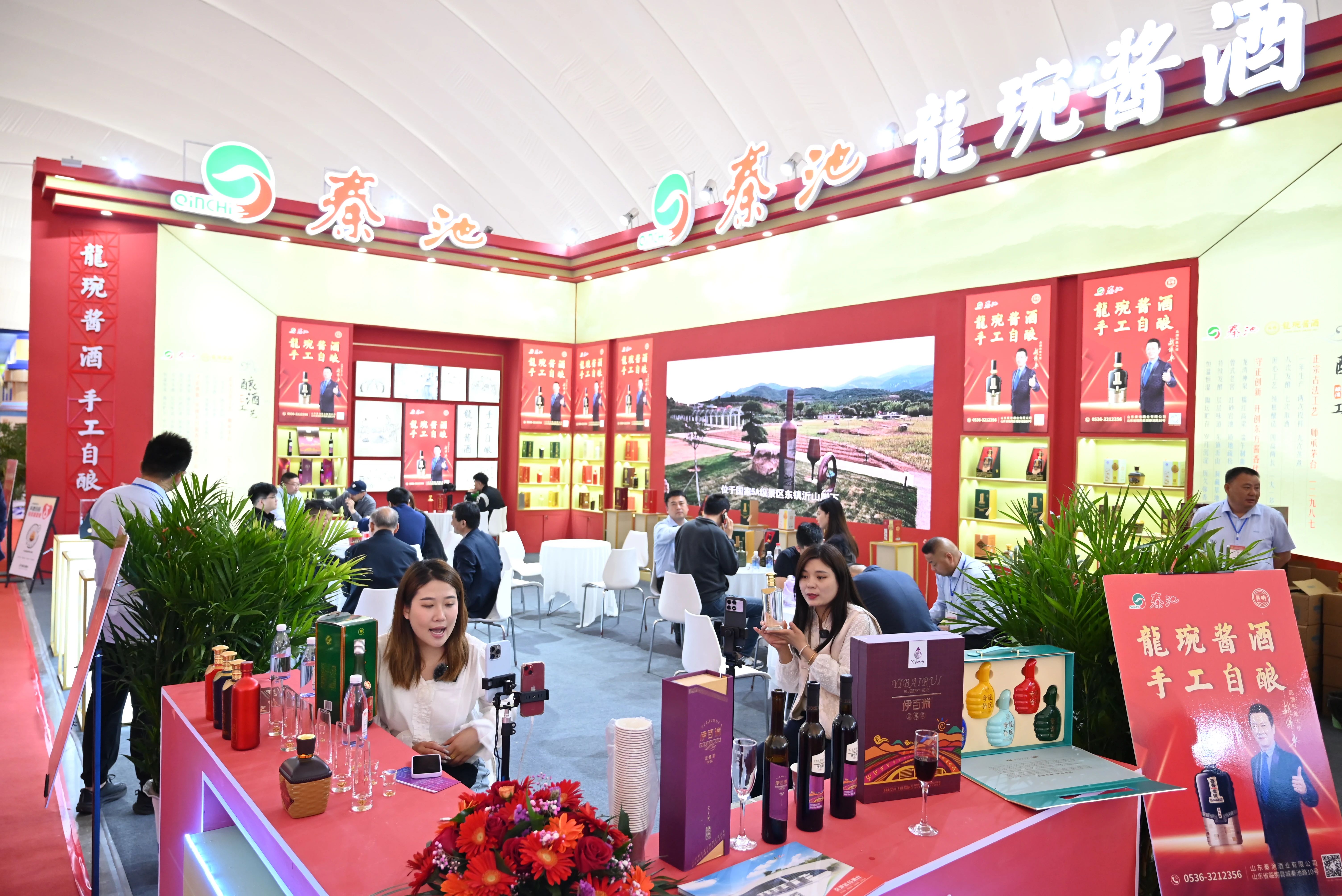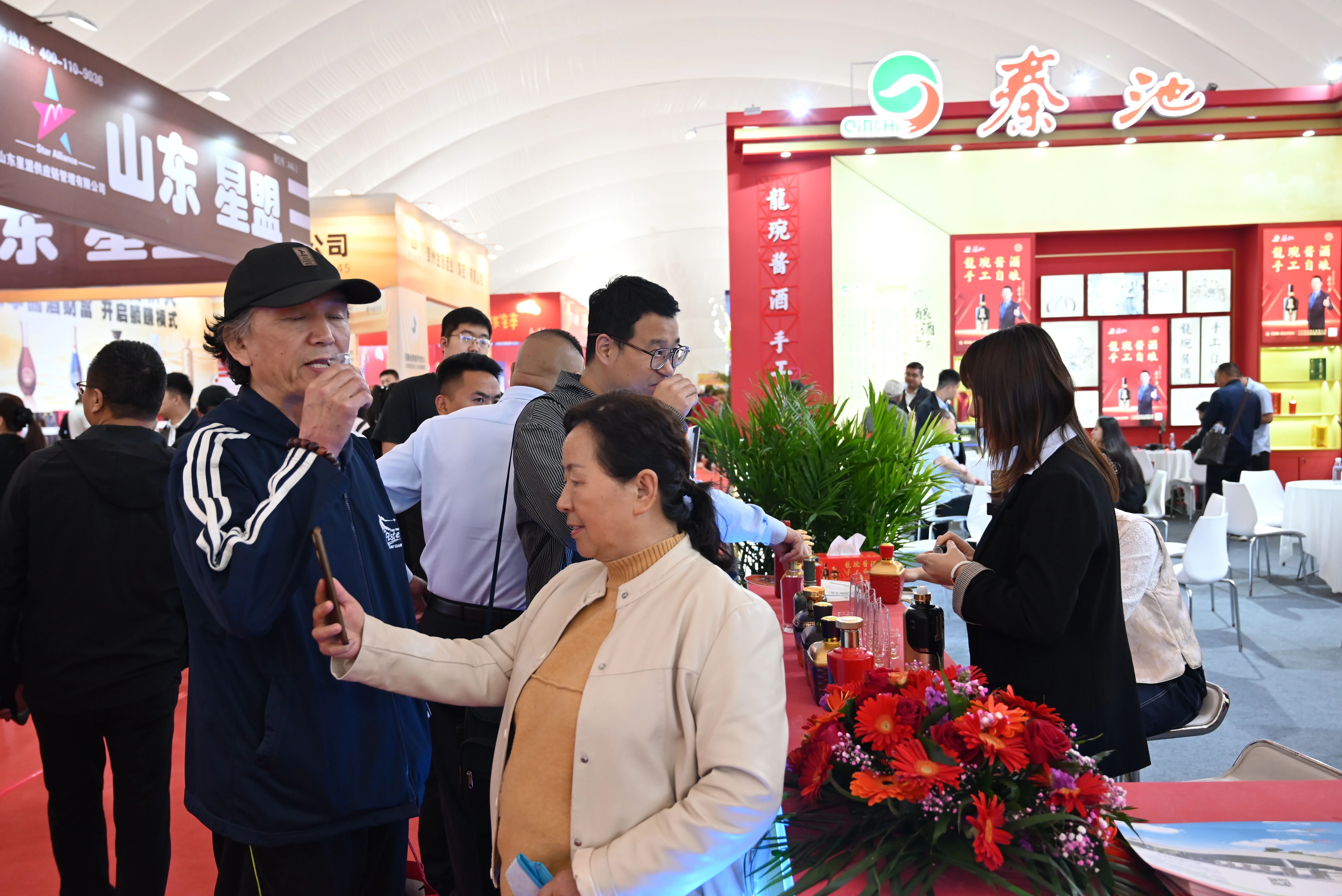 秦池酒業精心策劃展區視覺形象,融合傳統文化與現代美學,呈現出沉浸式的品牌體驗空間,既彰顯了秦池深厚的酒文化底蘊,又傳達了企業堅持高質量發展的品牌理念。展區人氣高漲,客商云集,咨詢、洽談氛圍熱烈,全面展現了秦池品牌的市場號召力。