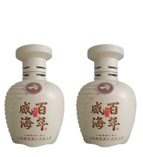 瓶蓋采用螺帽狀、開啟型,在增添了一份穩重與大氣的同時,更加防偽,保護消費者利益。在酒瓶的上方,鐫刻著一幅象形的威海地圖,寓意“百年威海”沖出中國,走向世界。“百年威海”的陶瓶,猶如一件精雕細琢的藝術品,捧在手中,酒香襲人;開啟品評,陶醉其中。