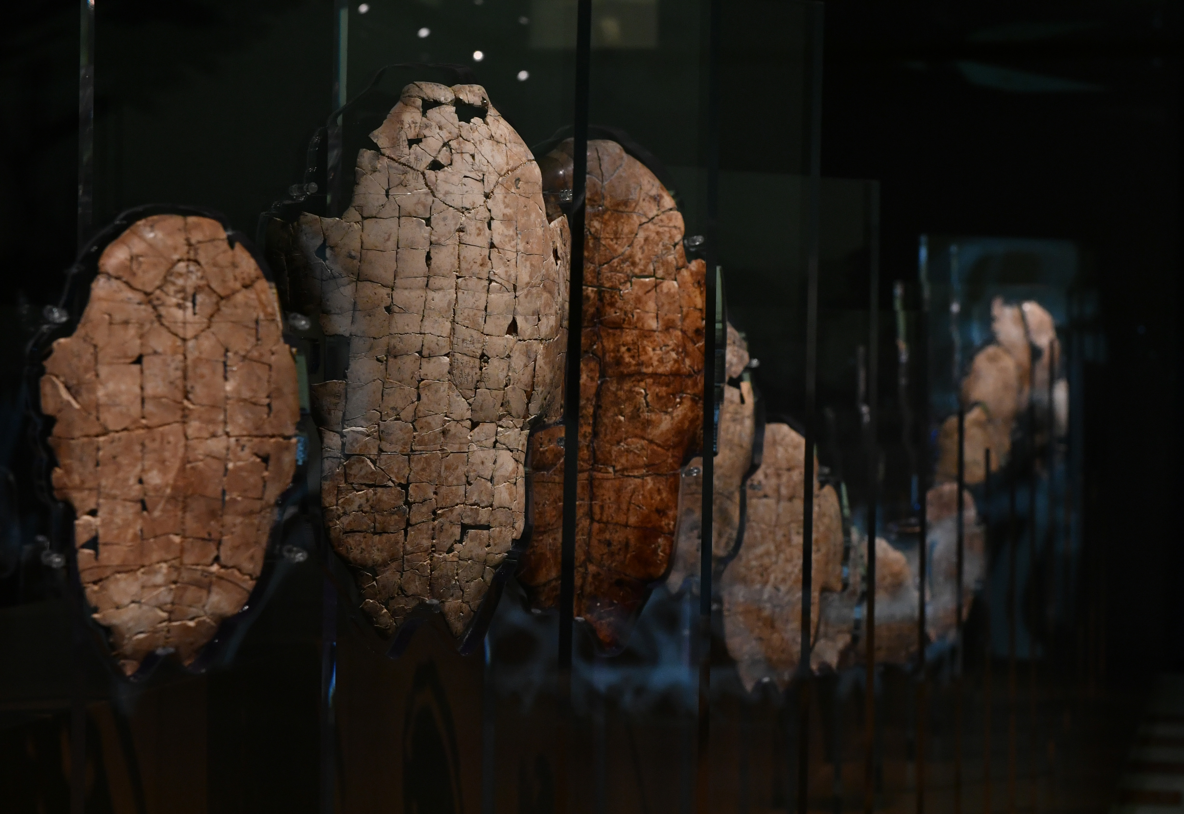在殷墟博物館新館拍攝的考古發掘出土的甲骨文骨片