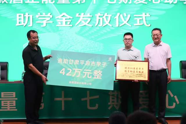 7月31日,金徽酒正能量第十七期愛心助學金發放儀式在內蒙古呼和浩特市回民中學舉行,現場向20名優秀高中畢業生發放4萬元助學金。