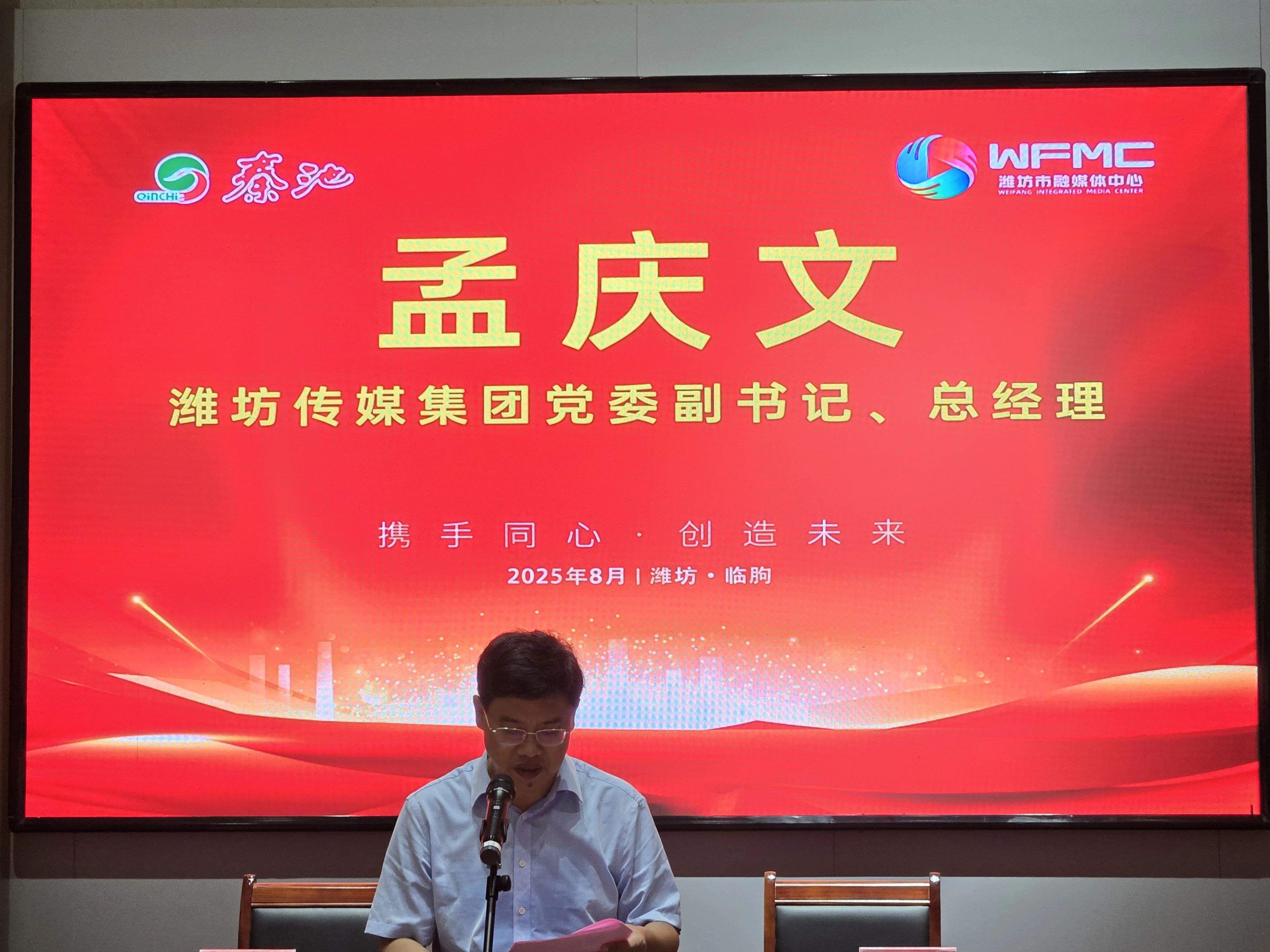 濰坊傳媒集團總經理孟慶文發表致辭,他強調,此次與秦池酒業的戰略合作深化,不僅是雙方資源優勢互補、共享共贏的重要體現,更是推動媒體與產業深度融合的創新實踐。希望雙方以此次合作為契機,共同探索建立具有濰坊特色的“媒體+產業”融合發展新模式,打造可推廣、可借鑒的地域合作新范式,為地方經濟高質量發展注入新動能。
