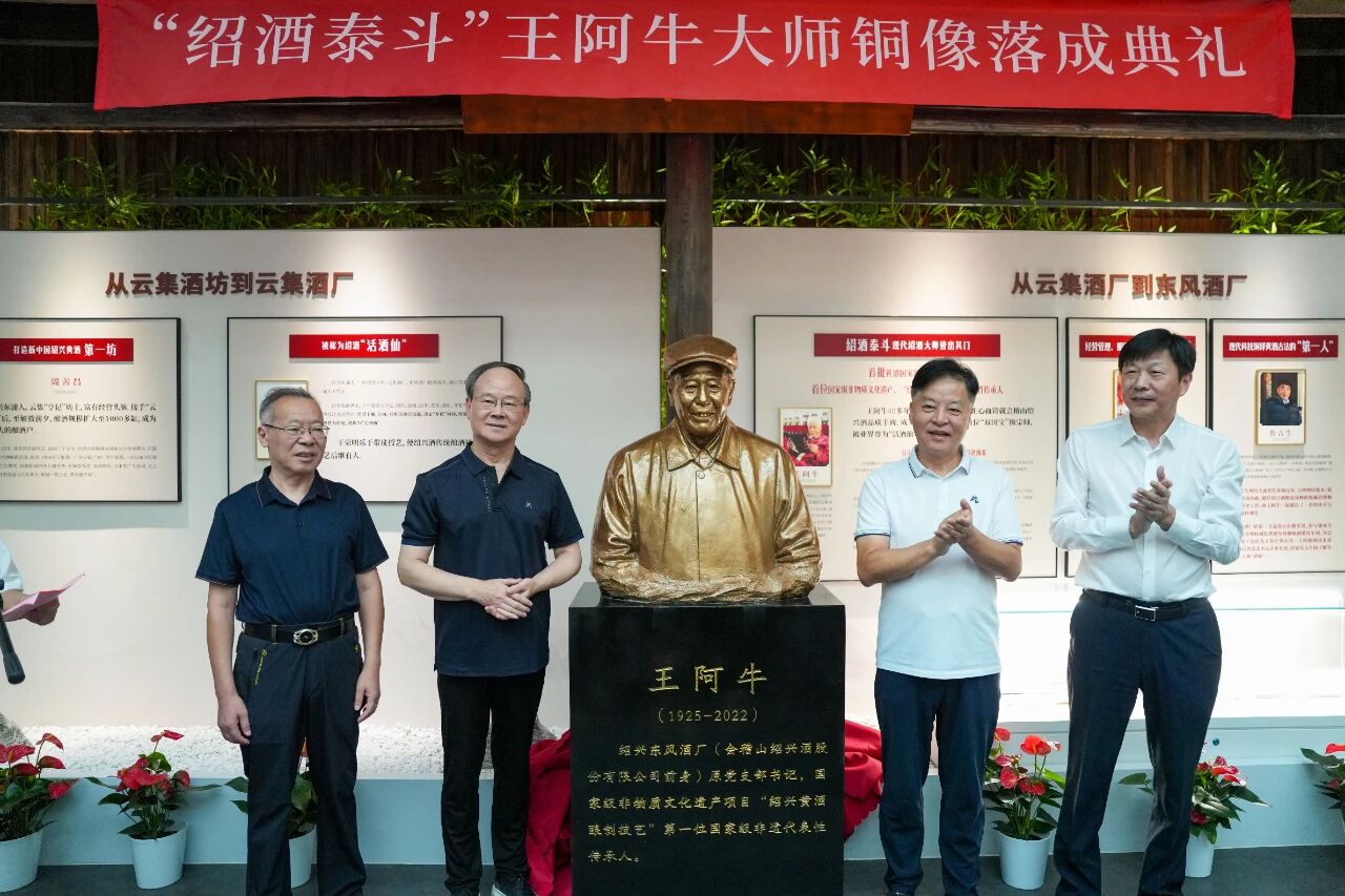 儀式由會(huì)稽山黨委書記、副董事長(zhǎng)傅祖康主持。紹興市原副市長(zhǎng)、紹興市黃酒行業(yè)協(xié)會(huì)會(huì)長(zhǎng)徐明光,紹興市非物質(zhì)文化遺產(chǎn)保護(hù)協(xié)會(huì)會(huì)長(zhǎng)何俊杰,精工控股集團(tuán)董事長(zhǎng)、會(huì)稽山董事長(zhǎng)方朝陽(yáng),與大師后人代表王新潮共同為銅像揭幕。揭幕禮成,這座銅像不僅是對(duì)大師百年人生的崇高致敬,更是紹興黃酒人心中一座不滅的“匠心燈塔”。