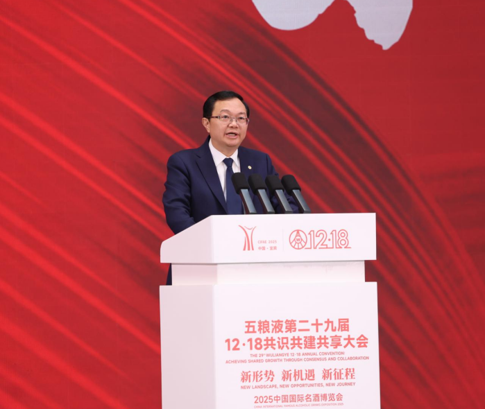 12月18日,長江源頭的四川宜賓五糧液集團多功能廳迎來了白酒行業“十四五”收官之際的壓軸盛會——第二十九屆12·18共識共建共享大會。來自全國的千余名經銷商、投資者、媒體代表及行業大咖齊聚一堂,圍繞“新形勢、新機遇、新征程”的核心主題共話發展。
