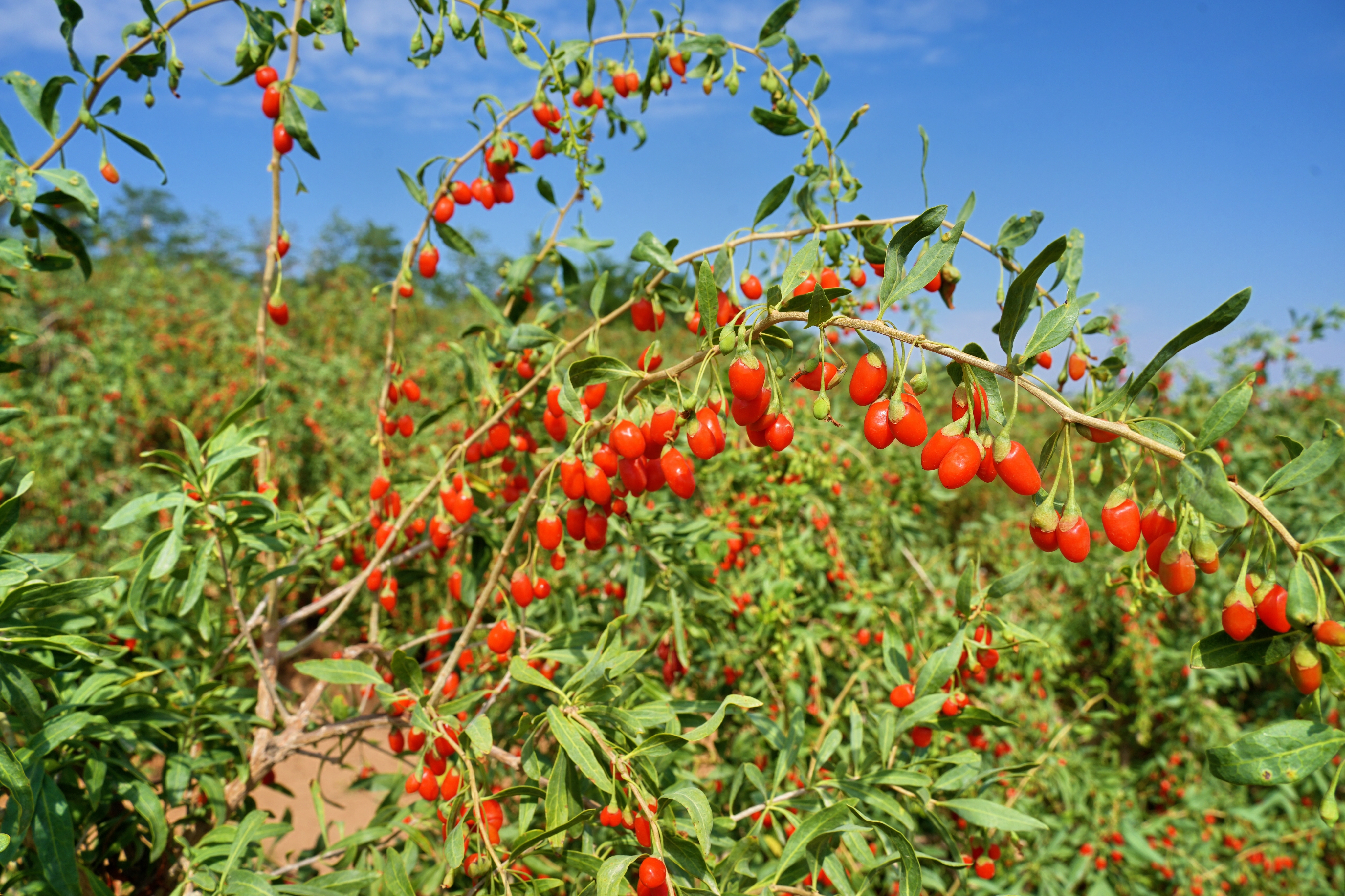 紅柳溝地處寧夏中部干旱帶,曾經風沙肆虐,境內沙地、鹽堿地較多,農作物很難成活。不過,這里有著獨特優勢:方圓30公里沒有工廠,周邊10公里沒有村鎮,生態環境好,且日常時間長、晝夜溫差大,對于枸杞的生長來說極好。