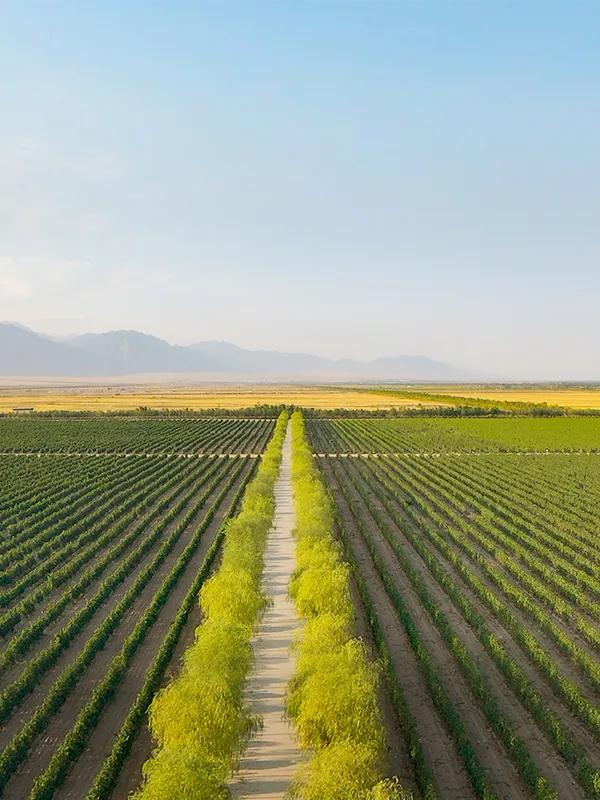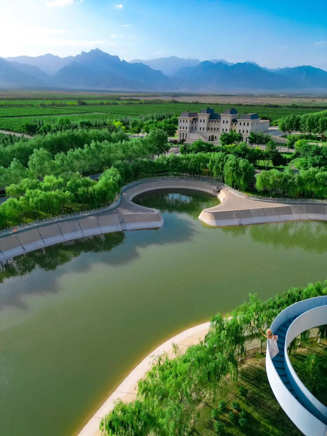 不僅如此,賀蘭山遮蔽了來自西北的嚴寒和風沙,讓葡萄在荒漠中獨享北緯38°黃金氣候帶的饋贈。黃河則拿出她5000多公里中僅有的溫柔河段,晝夜不停地滋養著莊園里的葡萄。