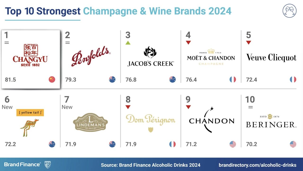 2023年、2024年,張裕連續(xù)兩年蟬聯(lián)全球權威品牌價值評估機構Brand Finance發(fā)布的“全球最強葡萄酒&香檳酒品牌”(World’s strongest Wine & Champagne brands)榜單第一名。