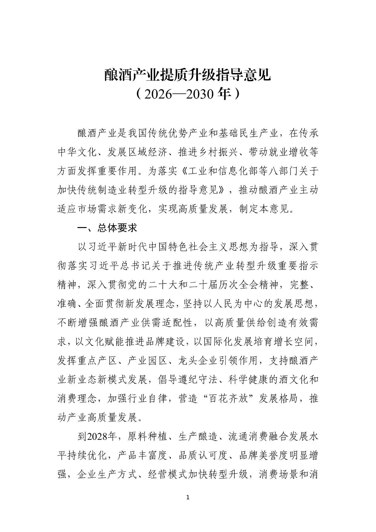 工業(yè)和信息化部 人力資源社會保障部 市場監(jiān)管總局關于印發(fā)《釀酒產業(yè)提質升級指導意見(2026—2030年)》的通知